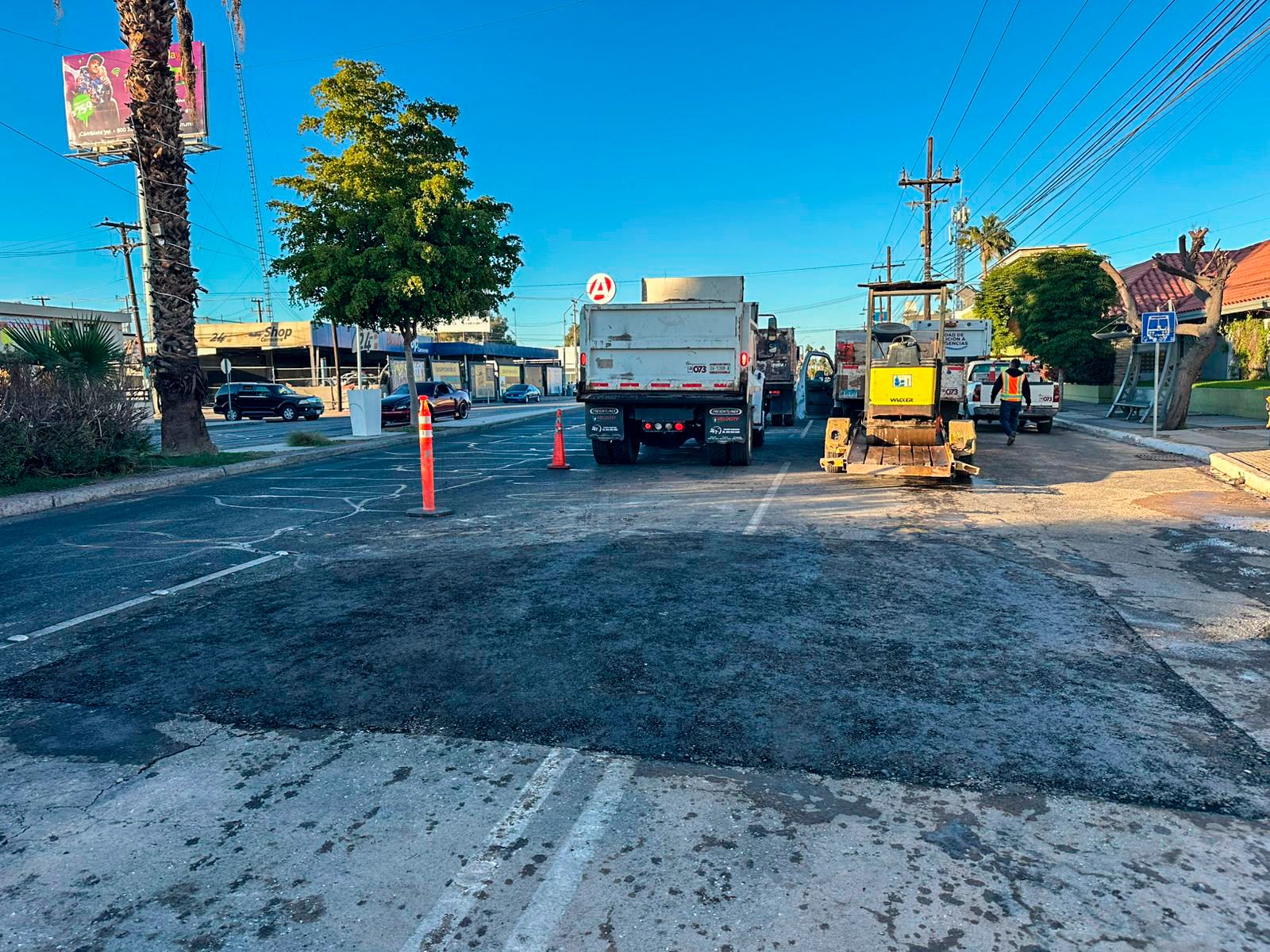 Reparación de fuga en Bulevar Justo Sierra. Se atendió una ruptura en la línea de 14 pulgadas, que fue reparada frente a Bamoa. Posteriormente, el equipo de bacheo intervino para dejar en condiciones adecuadas la vialidad afectada.