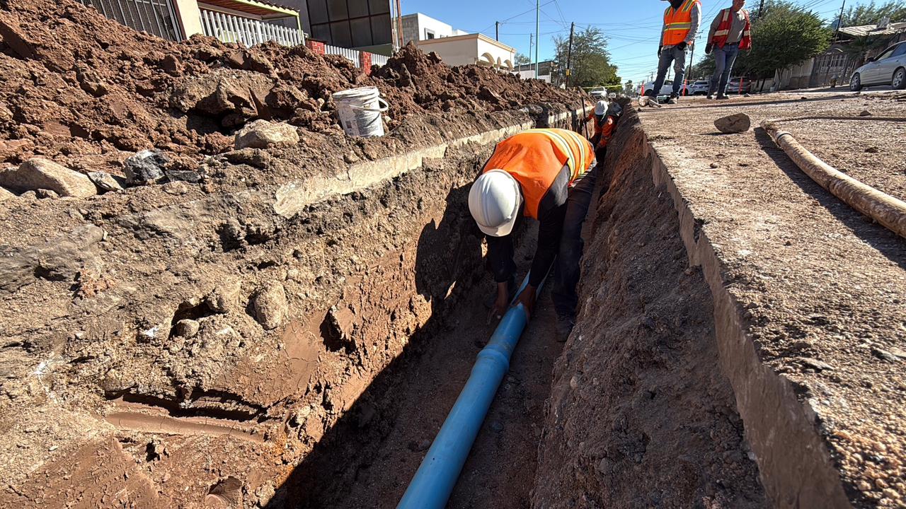 **La obra contempla la sustitución de tubería de asbesto-cemento por PVC C-900 de 4 pulgadas, con una inversión superior a 11 millones de pesos. Actualmente, se desarrollan trabajos de instalación de tomas domiciliarias y líneas de derivación sin afectar el suministro.