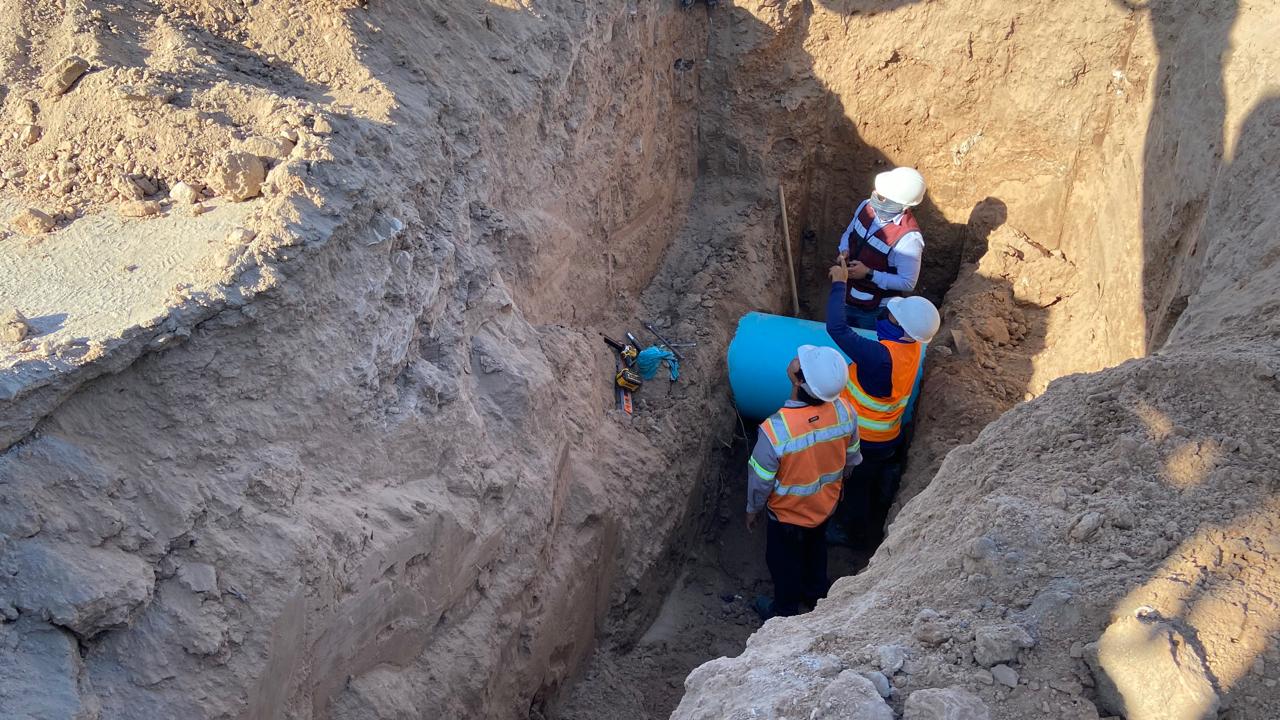Se han realizado varias excavaciones después del percance, donde se instalaron nuevas líneas con el objetivo de segmentar el suministro de agua a las colonias y poder realizar los trabajos de reposición de tubería de 30 pulgadas.