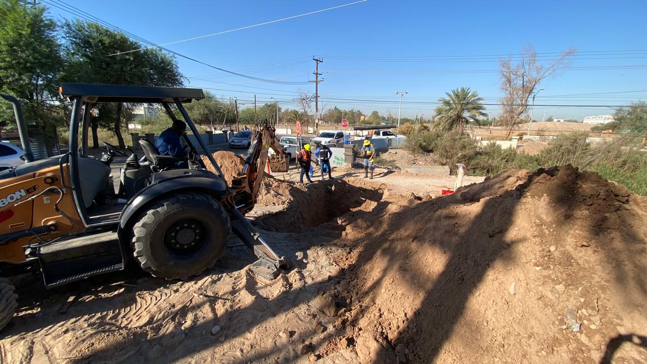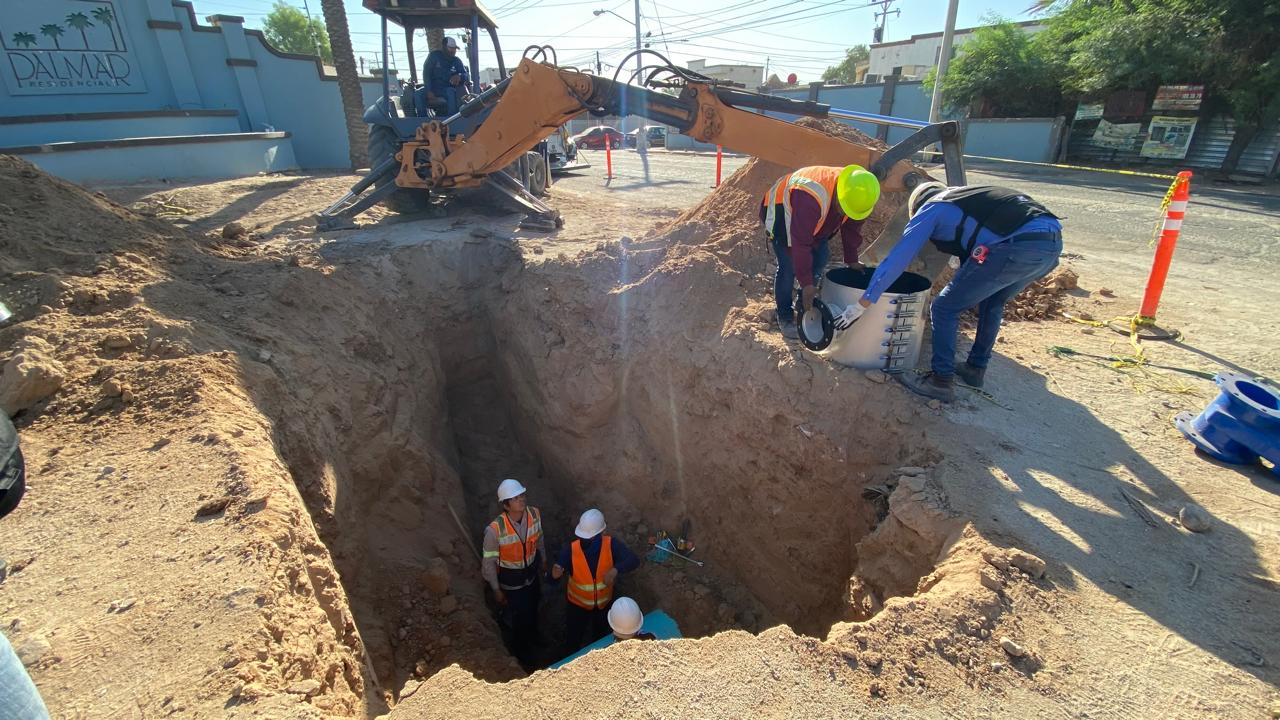 Mexicali. – La Comisión Estatal de Servicios Públicos de Mexicali (CESPM) sigue avanzando en las labores de reparación en la intersección de la calle 4.ª y Palmar de Santa Anita.