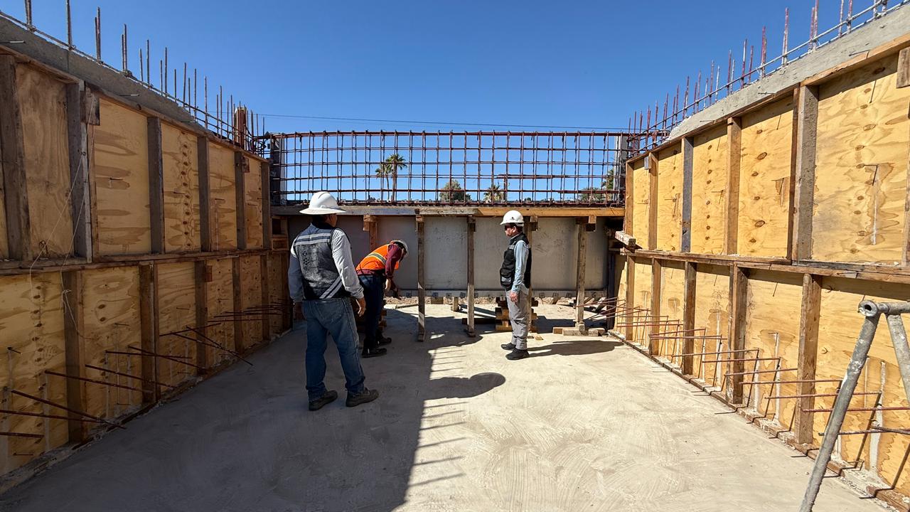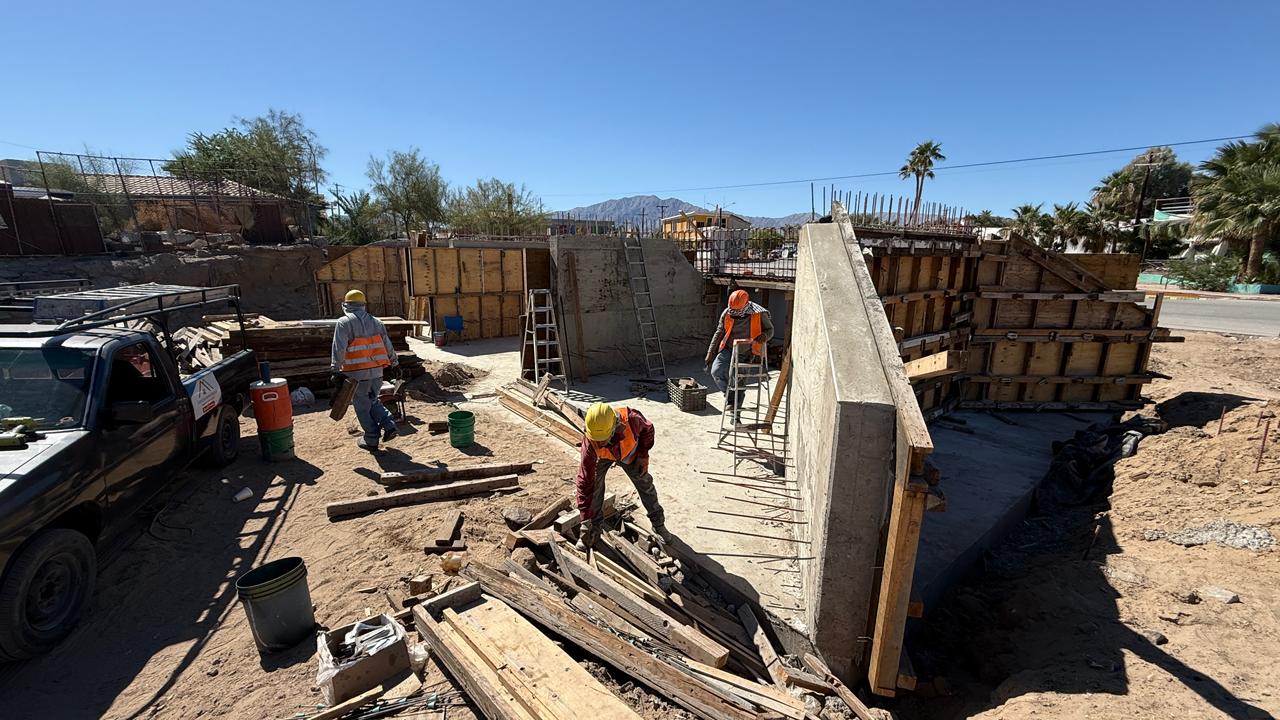 Actualmente, las cuadrillas se encuentran en la instalación de los marcos de compuertas dentro del cimbrado, etapa previa al colado de los muros estructurales, lo que permitirá dar forma al sistema de control hidráulico que beneficiará directamente a los habitantes de San Felipe y su entorno costero.