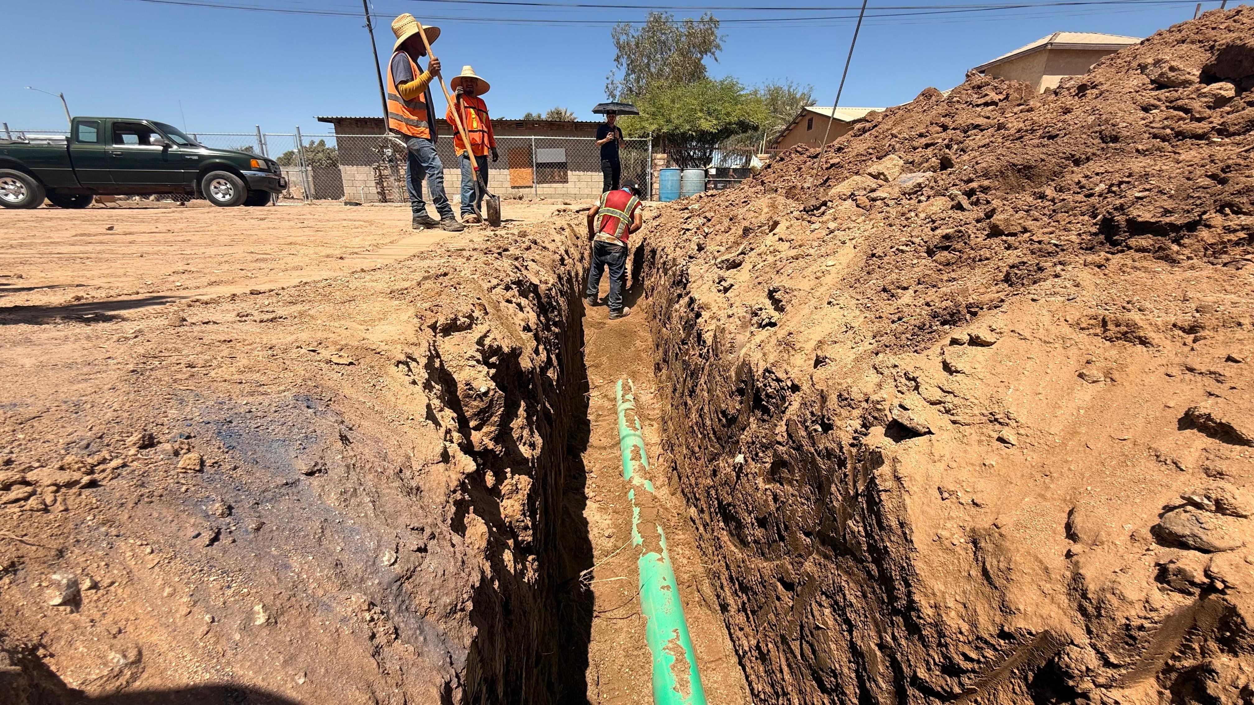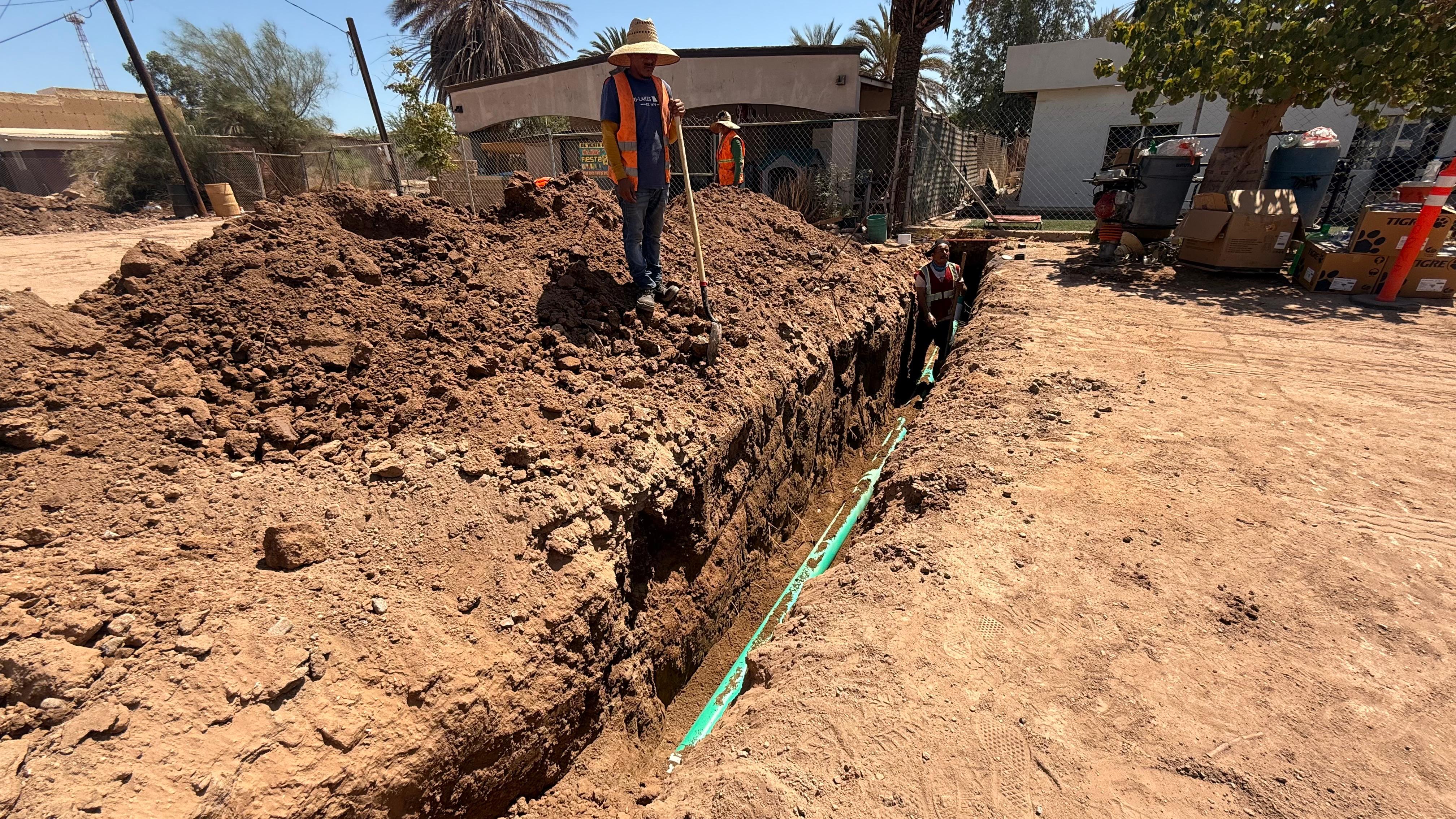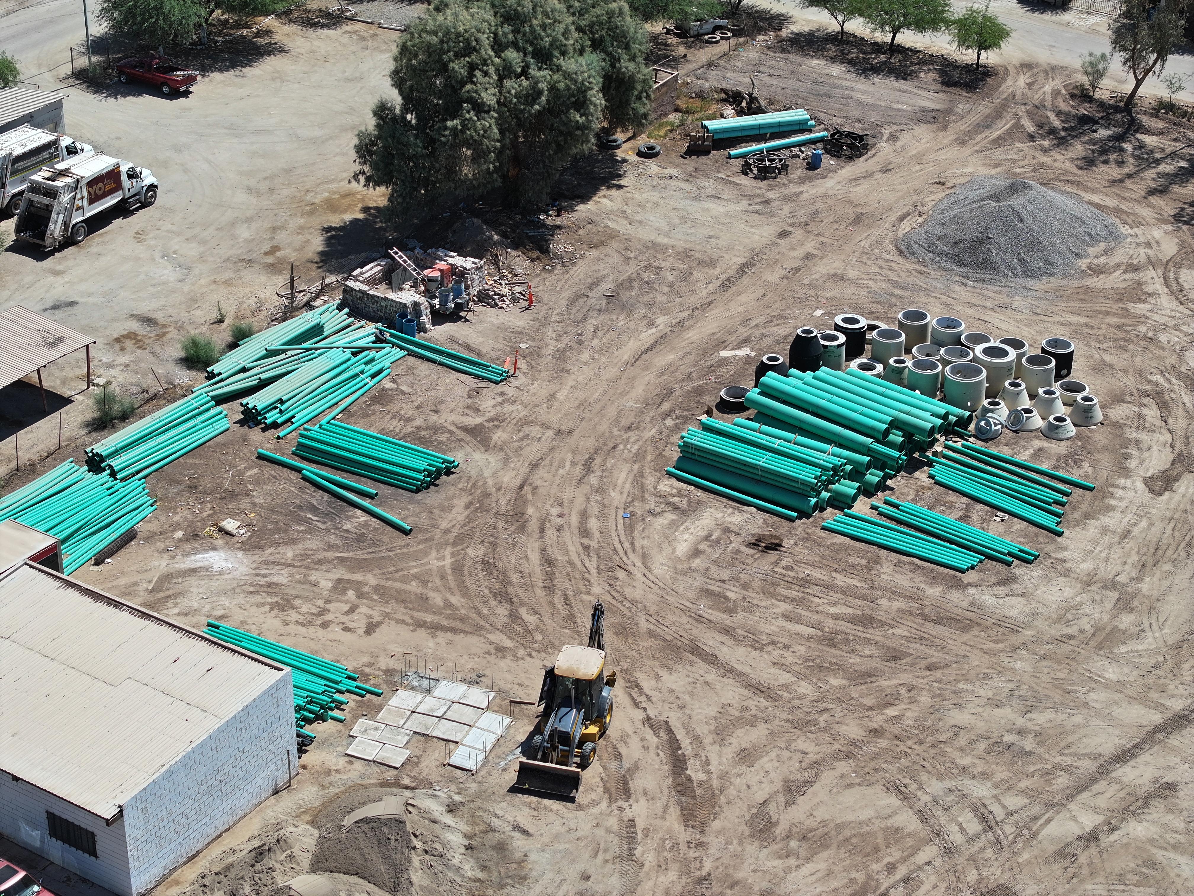 Con una inversión de 188 millones de pesos provenientes del Bono Verde, CESPM desarrolla la primera etapa del sistema de alcantarillado que beneficiará a más de 7,000 habitantes del Valle de Mexicali, contemplando la construcción de un cárcamo, un emisor y una red sanitaria.