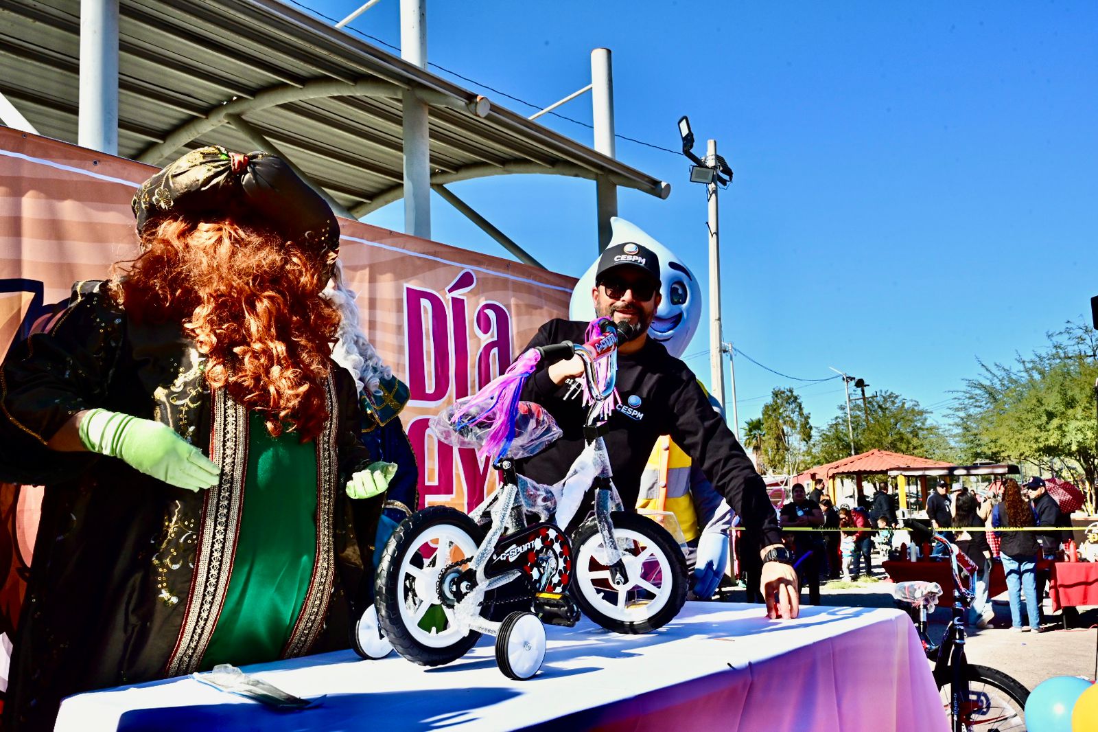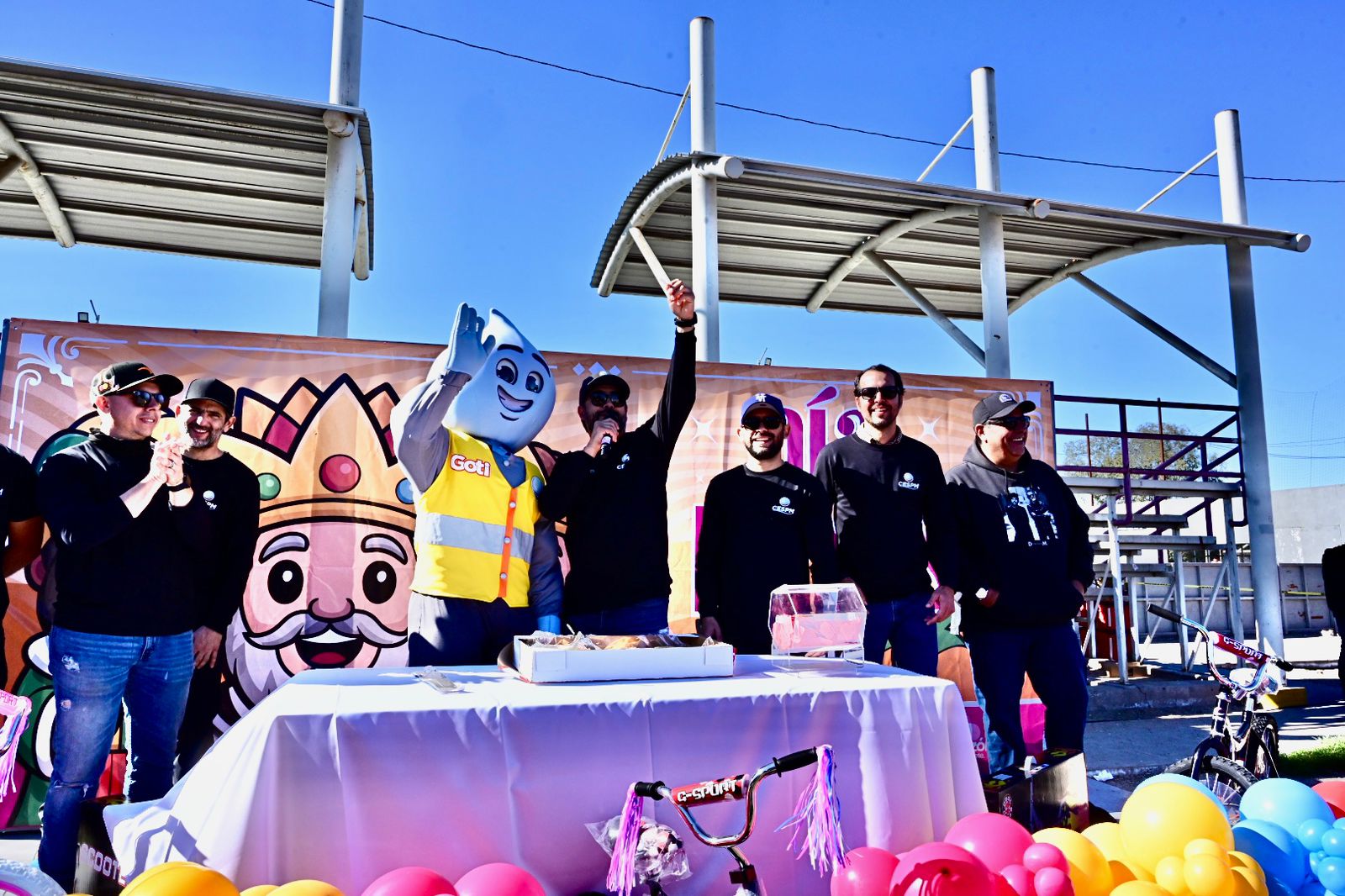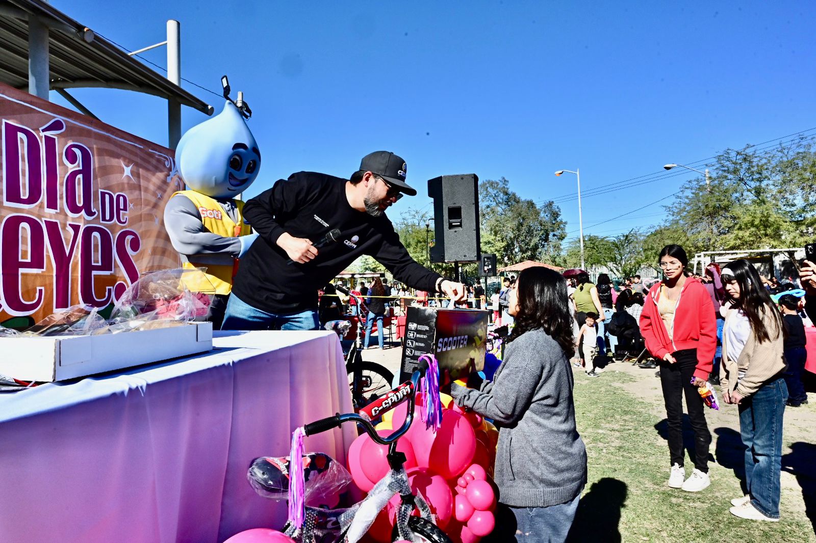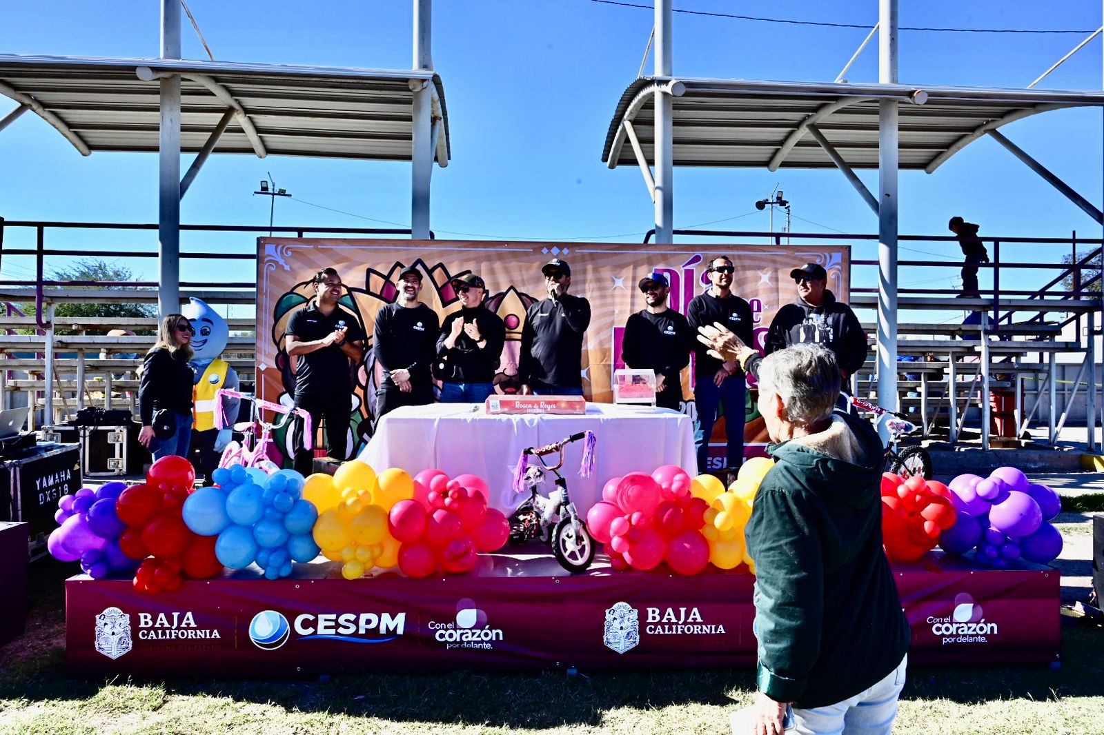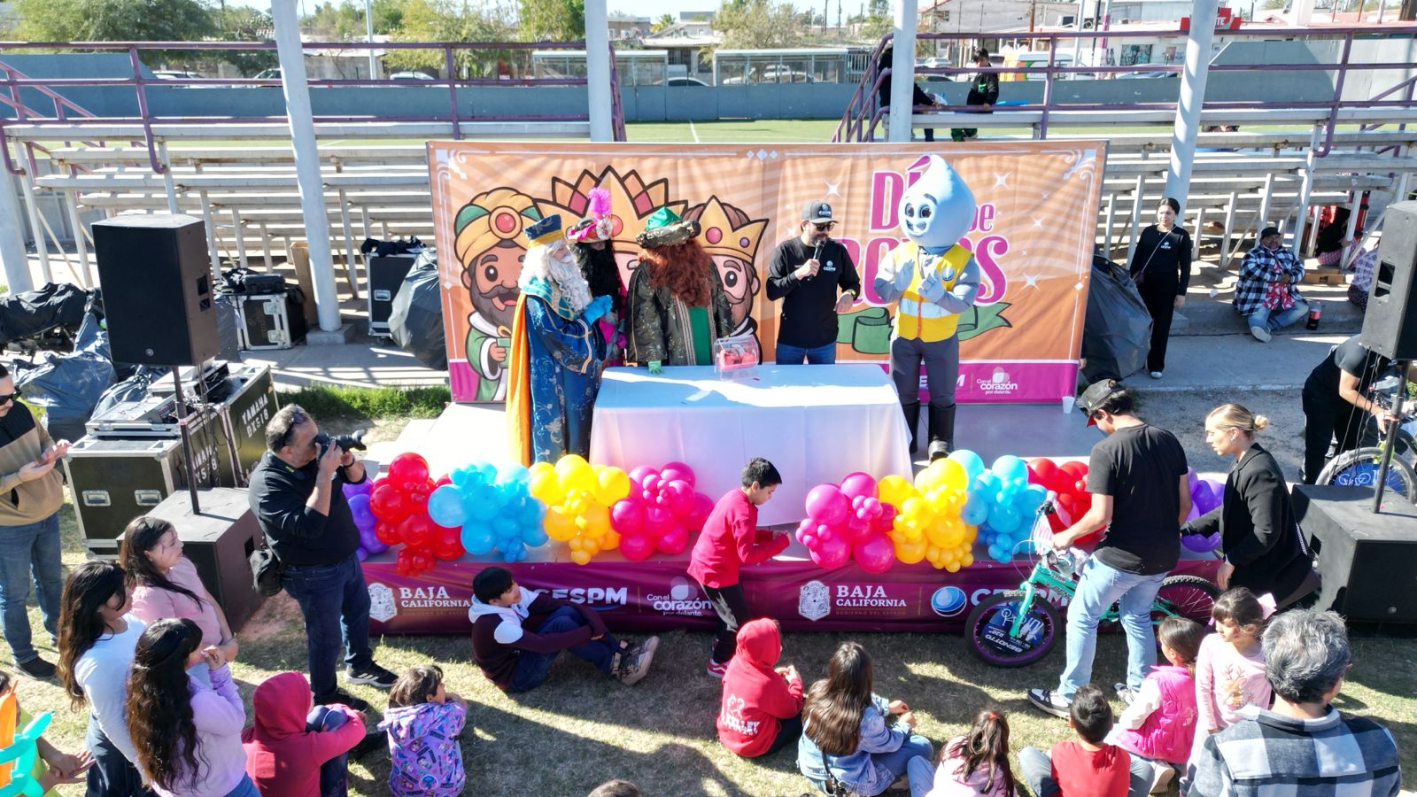 Mexicali.– La Comisión Estatal de Servicios Públicos de Mexicali (CESPM) llevó a cabo con gran éxito el Festival de Reyes en la unidad deportiva de la colonia Hidalgo, evento que reunió principalmente niñas y niños acompañados de sus familias, en un ambiente de convivencia, alegría y recreación.