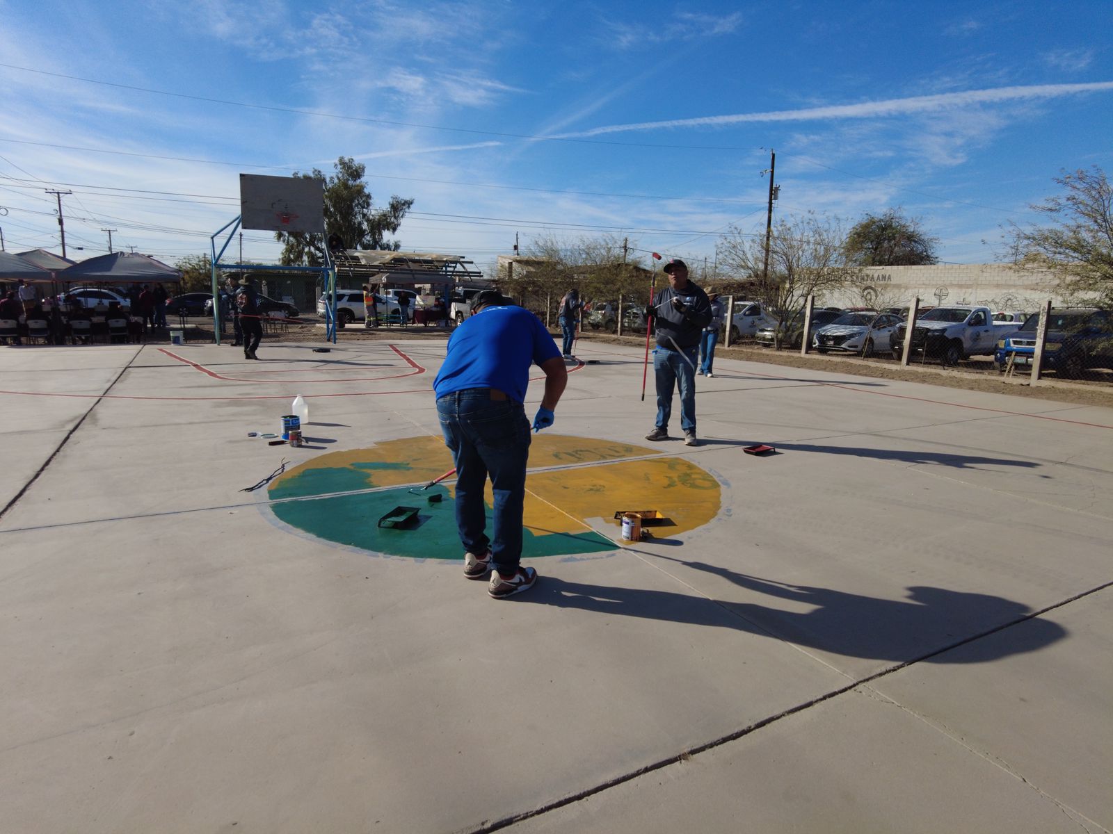 El director de CESPM, Armando Carrazco participó con la comunidad en los trabajos de rehabilitación de la cancha de baloncesto, acciones que contribuyeron a mejorar la infraestructura urbana y el entorno de los vecinos.