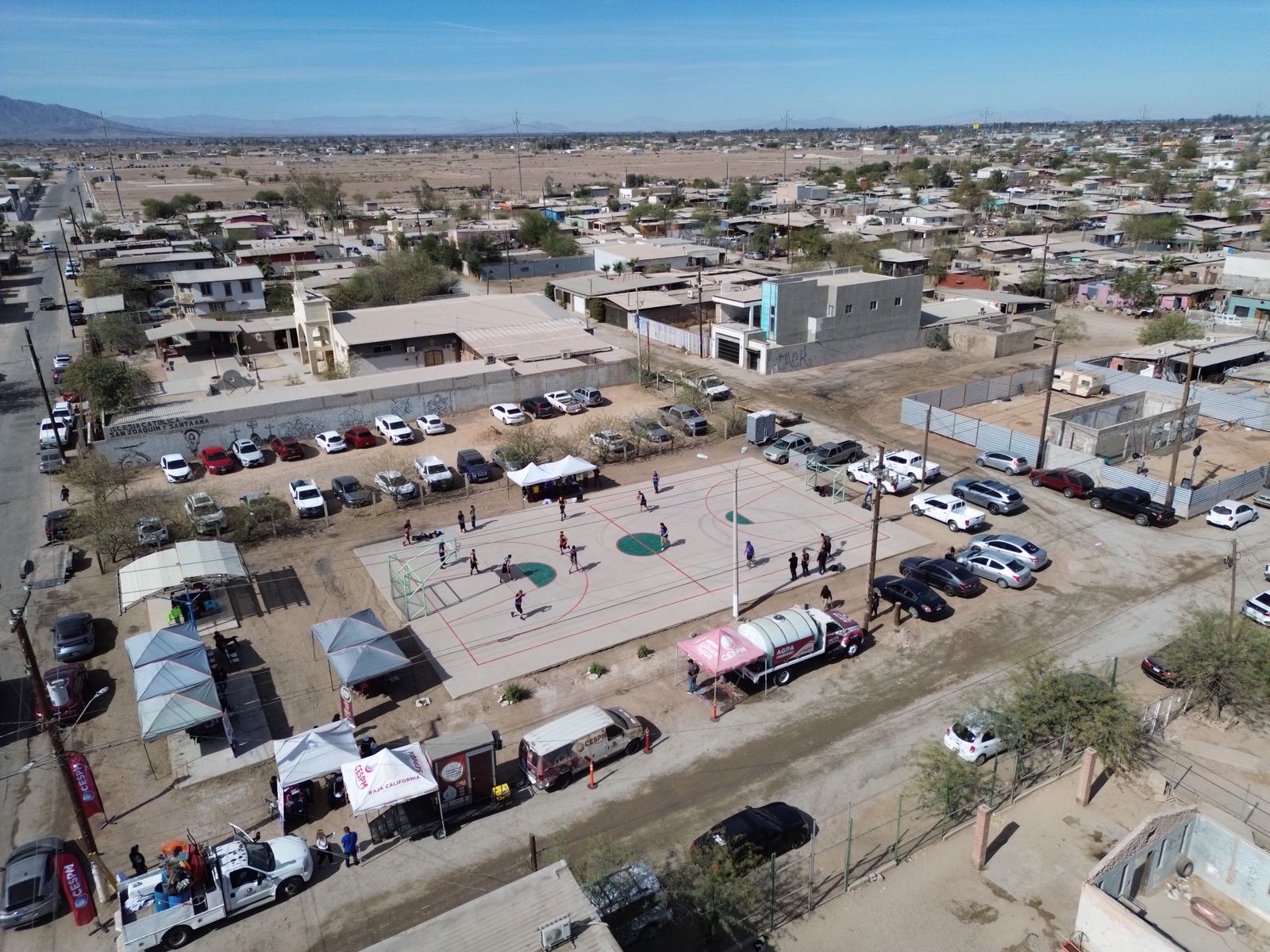 El director de CESPM, Armando Carrazco participó con la comunidad en los trabajos de rehabilitación de la cancha de baloncesto, acciones que contribuyeron a mejorar la infraestructura urbana y el entorno de los vecinos.