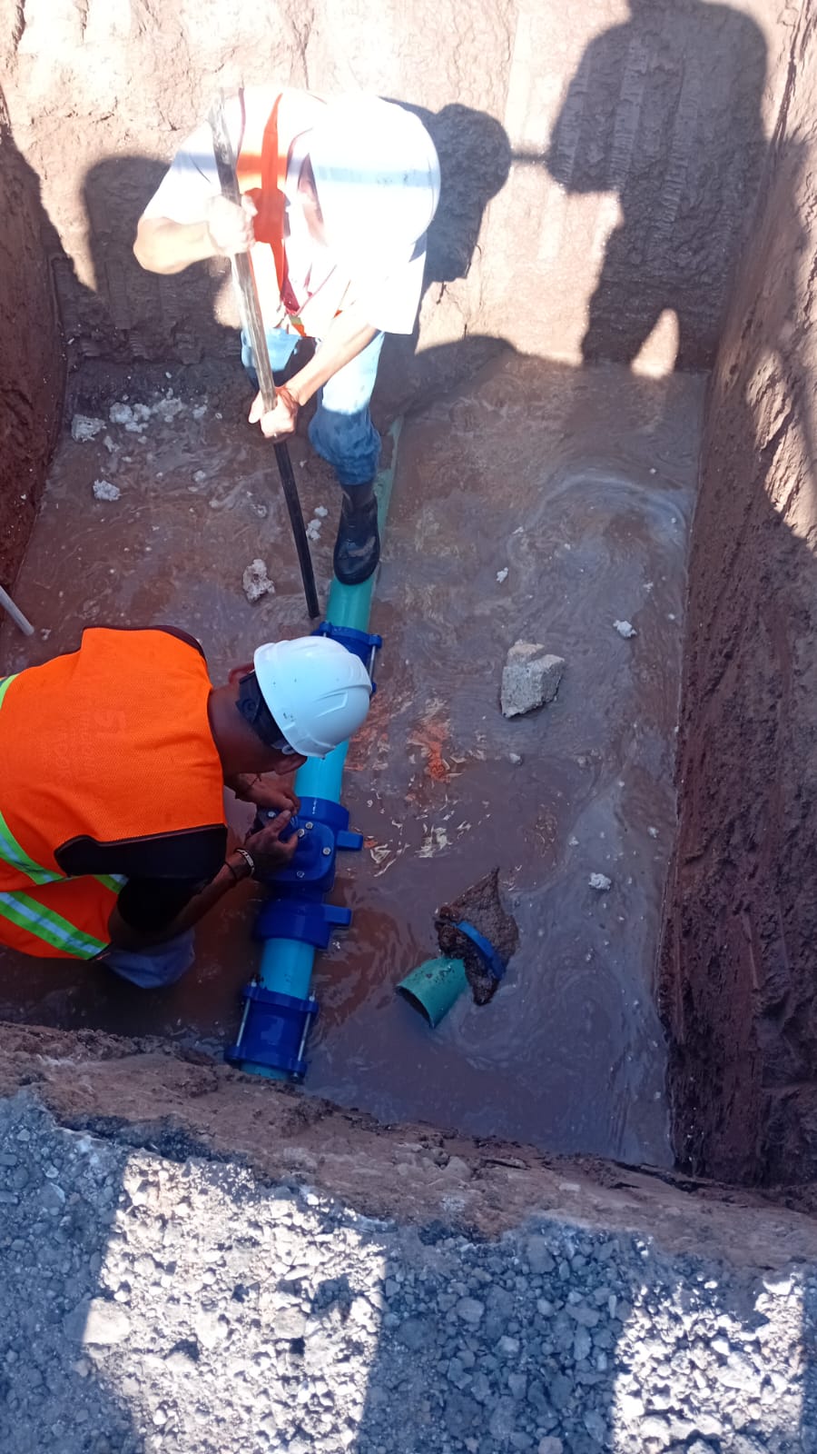 Durante la intervención, se realizaron las maniobras necesarias para retirar el equipo deteriorado e instalar una nueva válvula que permitirá optimizar el manejo del flujo dentro de la red de distribución, facilitando futuras maniobras operativas en caso de reparaciones o mantenimiento.