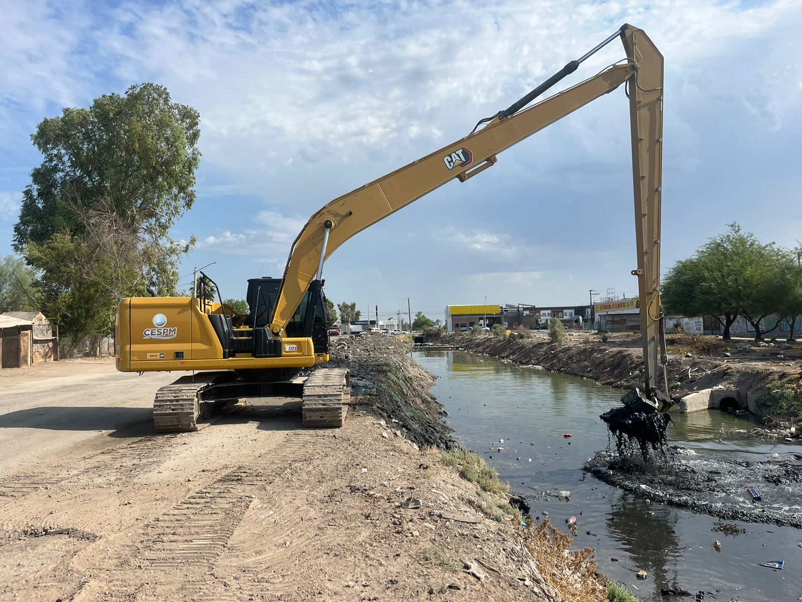 Mexicali. — La Comisión Estatal de Servicios Públicos de Mexicali (CESPM) ha intensificado sus esfuerzos de desazolve y mantenimiento en los diversos drenes de la ciudad, atendiendo un total de 148 km de longitud dentro del área urbana. De estos, 67 km se encuentran en zonas altamente pobladas y operan como medio de conducción del agua captada por la red pluvial hasta su desembocadura en el Río Nuevo.