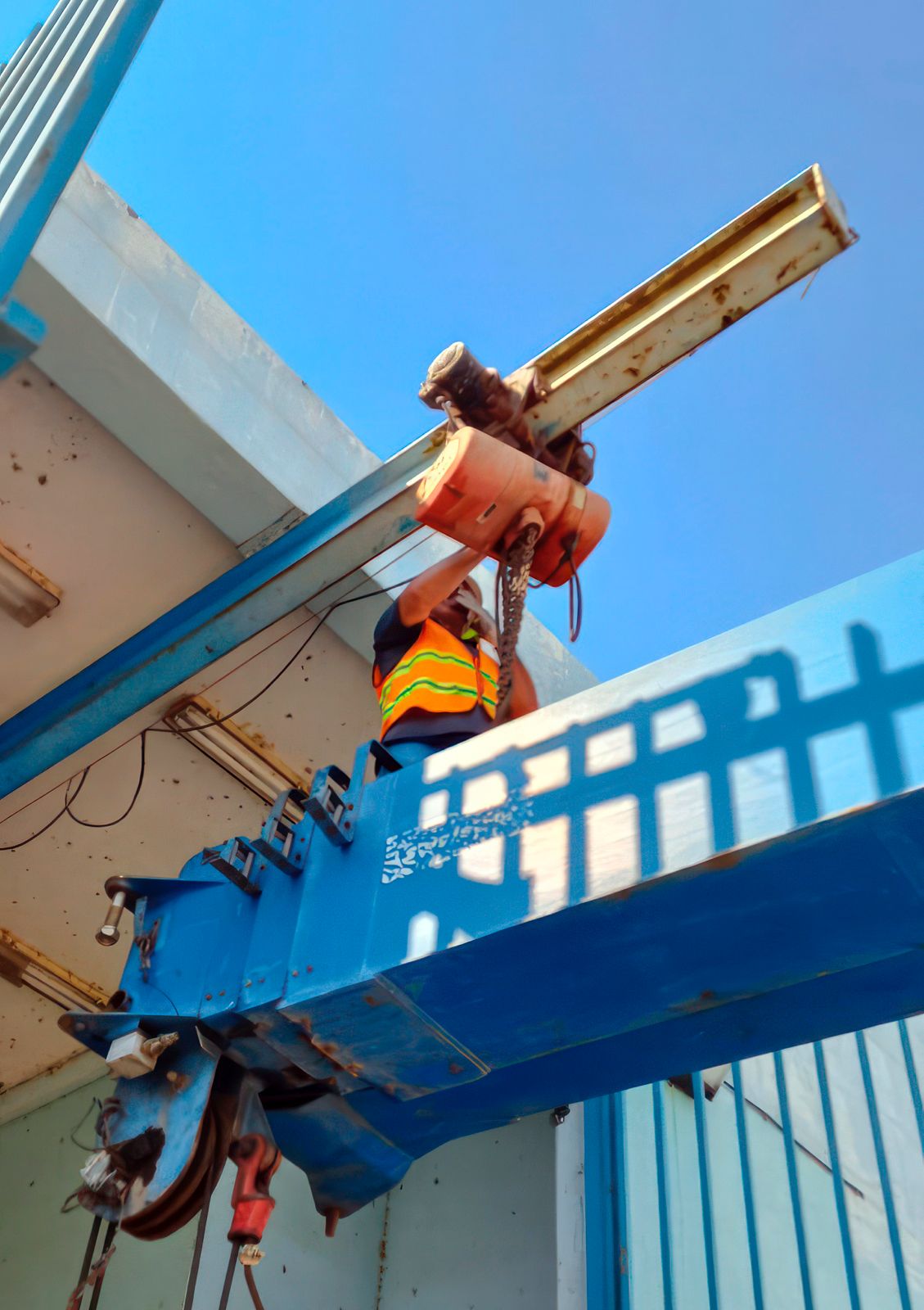 Asimismo, el equipo de Mantenimiento Mecánico y Eléctrico retiró el polipasto, la cual es una maquinaria esencial utilizada en el ámbito de seguridad en alturas y protección personal durante trabajos en alturas este equipamiento eléctrico, es utilizado para cargar los tanques de cloro gas de 1 tonelada, necesarios para la desinfección del agua, se instalará uno nuevo en la PTAR Zaragoza, garantizando así la continuidad y seguridad en el proceso.