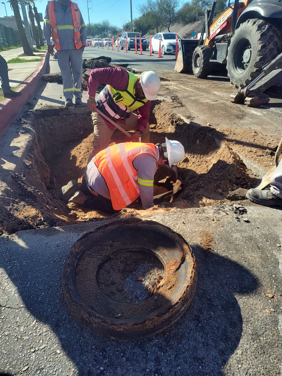 Mexicali.– La Comisión Estatal de Servicios Públicos de Mexicali (CESPM) llevó a cabo trabajos de sondeo en una línea de conducción de 20 pulgadas ubicada en la intersección de Río Nuevo y Calzada Independencia, como parte de las acciones de mantenimiento y mejora de la infraestructura hidráulica.