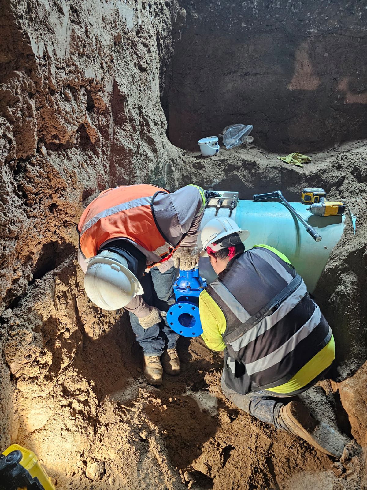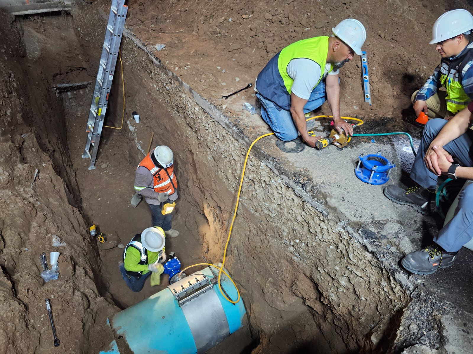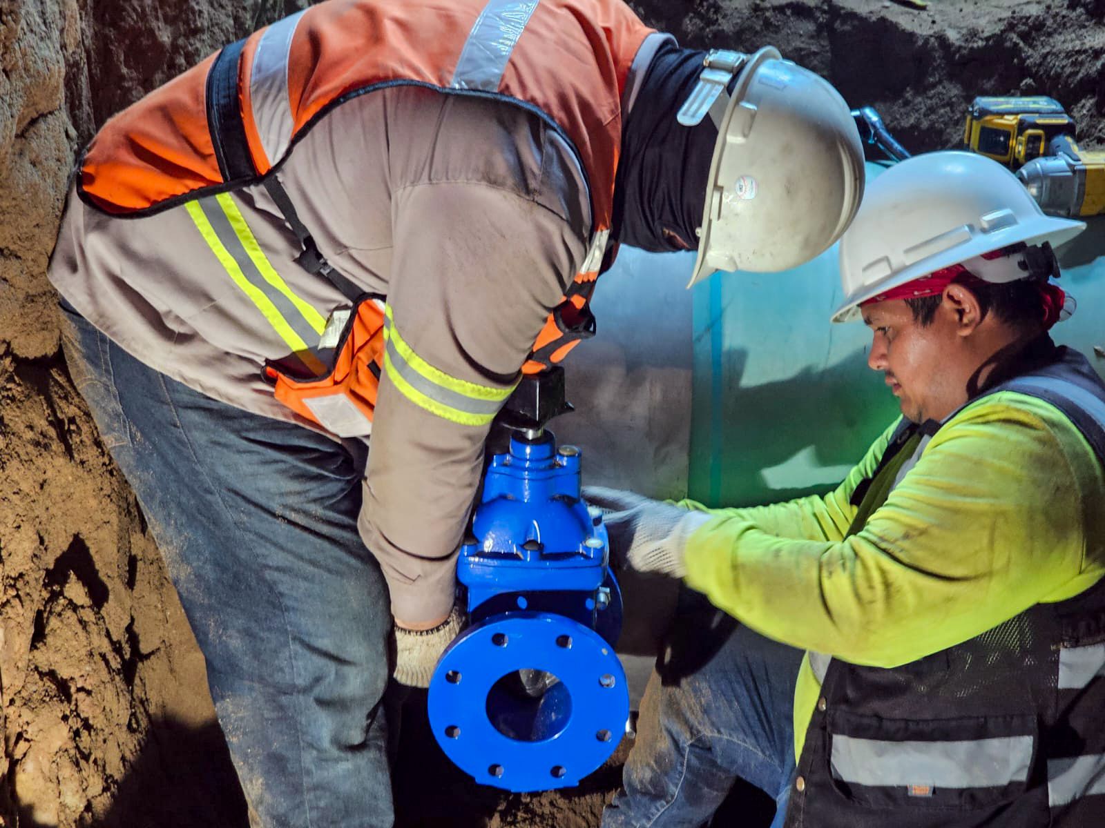 Las acciones principales consistieron en la instalación de tubería de 20 pulgadas para agua potable, así como la colocación de un tapping sleeve de 30” x 4”, equipo que permitirá realizar conexiones a la red existente sin interrumpir completamente el suministro.