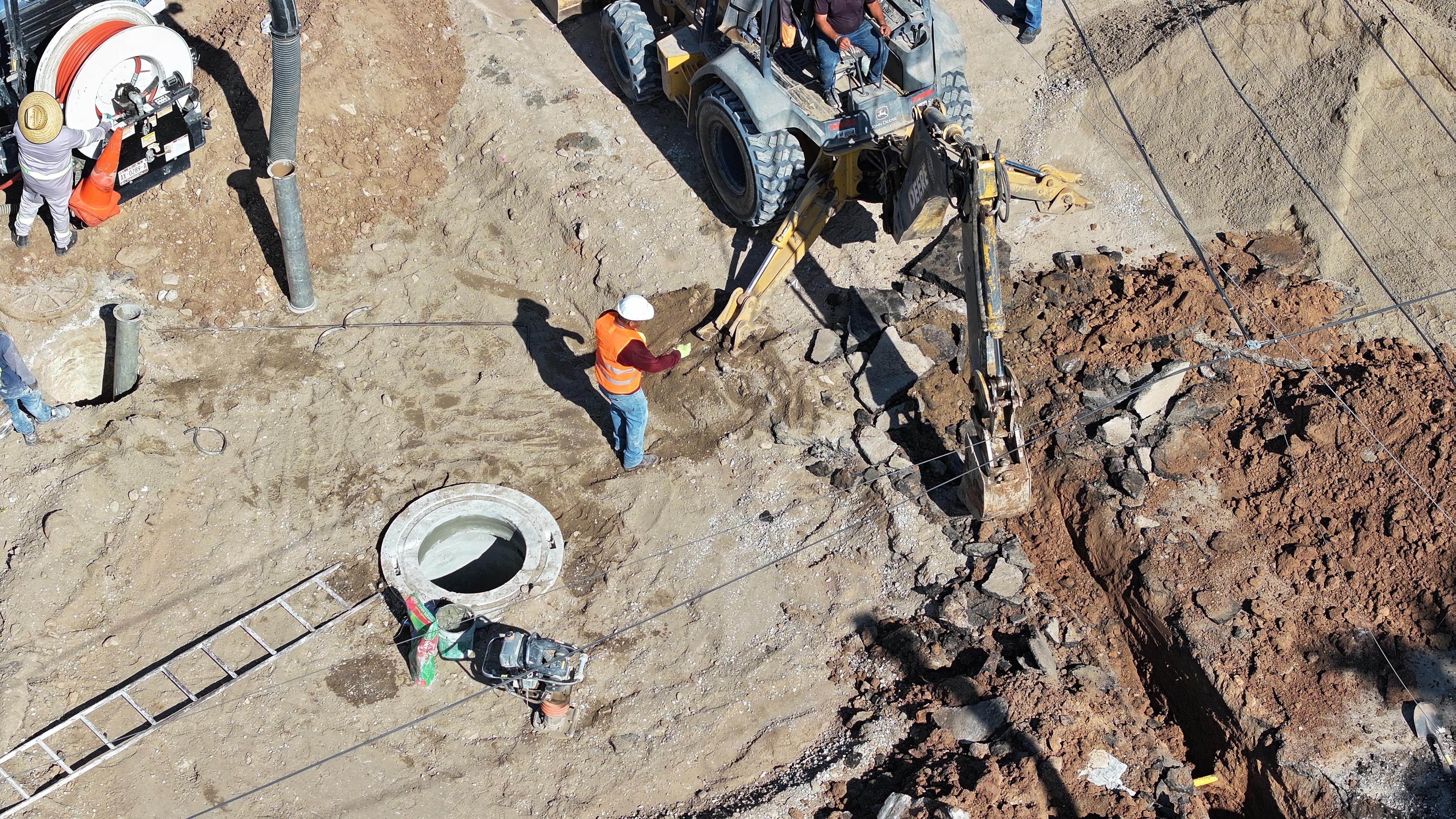 La Comisión Estatal de Servicios Públicos de Mexicali (CESPM) realizó la instalación de dos nuevos pozos de visita de concreto en la Avenida Herreros y Calle “I”, en la Colonia Industrial, como parte de los trabajos de actualización del sistema sanitario.