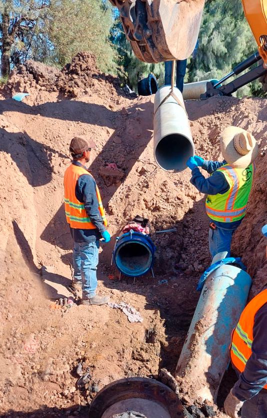 El equipo especializado del área de Aguas Residuales, con el apoyo de maquinaria de la red de la zona 9, reemplazó un tramo dañado del emisor y ajustó las juntas mecánicas para restablecer su funcionamiento óptimo.