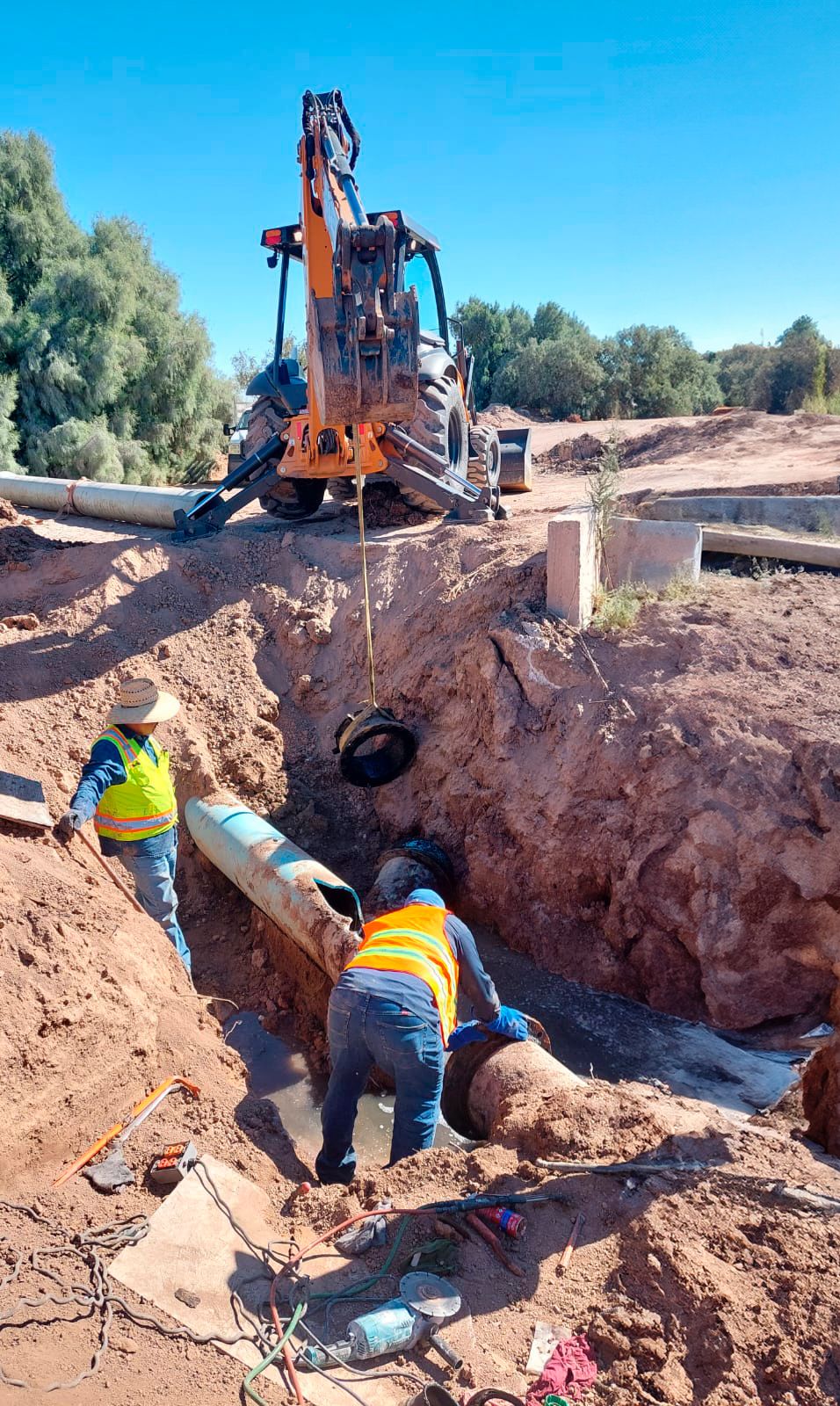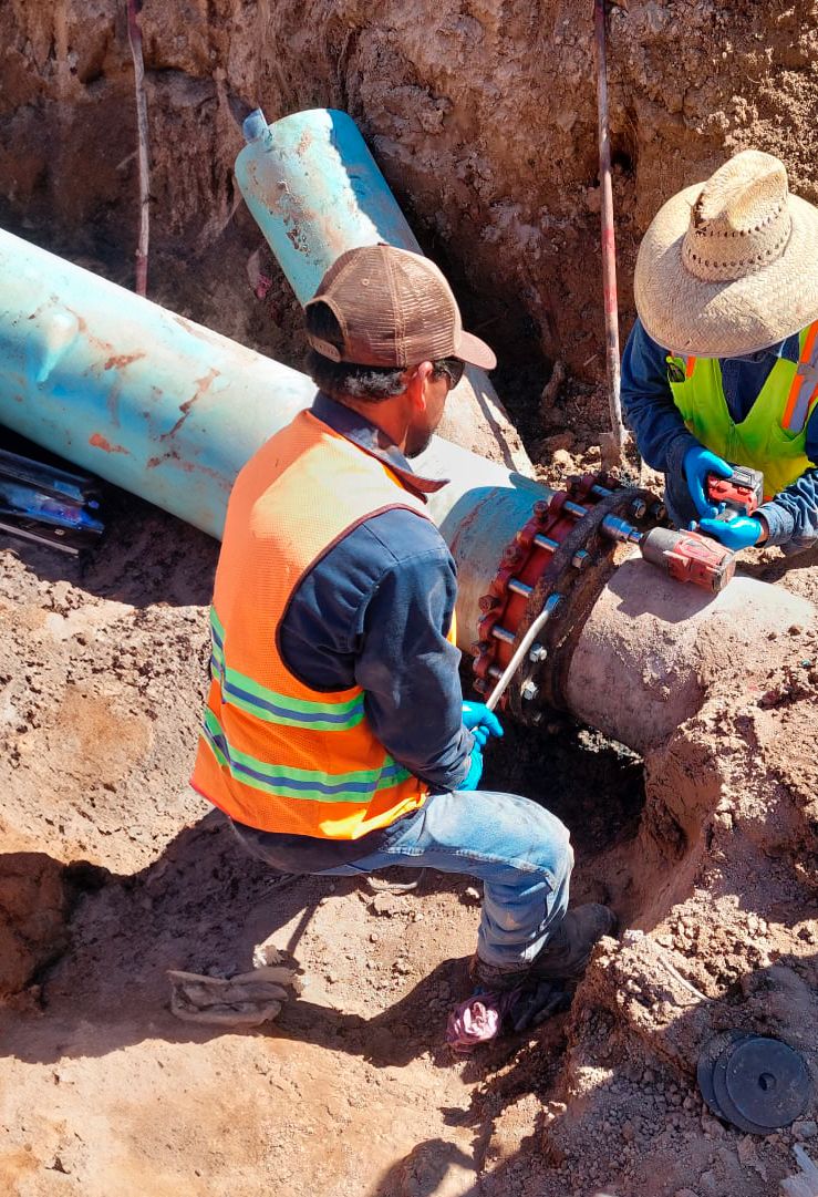 Mexicali, B.C. — La Comisión Estatal de Servicios Públicos de Mexicali (CESPM) llevó a cabo trabajos de mantenimiento y reparación en el emisor a presión que transporta aguas residuales desde el cárcamo ubicado en la calle 6ª hasta la planta de tratamiento de Ciudad Guadalupe Victoria.