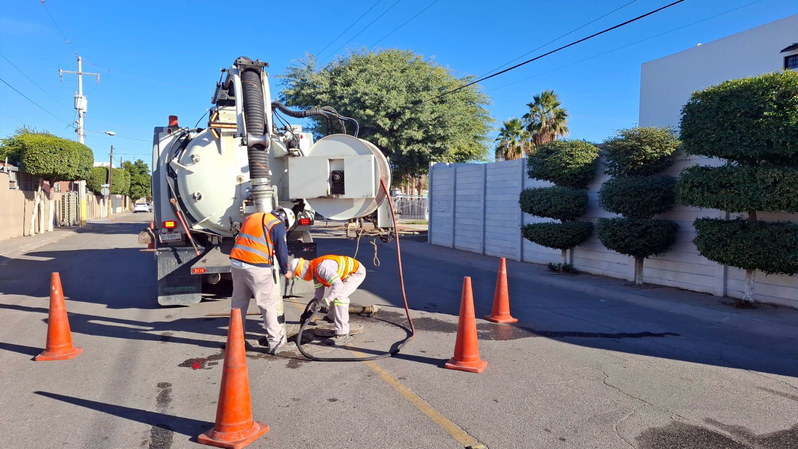 CESPM llevó a cabo una jornada intensiva de limpieza y desazolve en la red pluvial y sanitaria de diversas colonias de Mexicali, mediante acciones preventivas en bocas de tormenta, colectores y vasos de contención.
