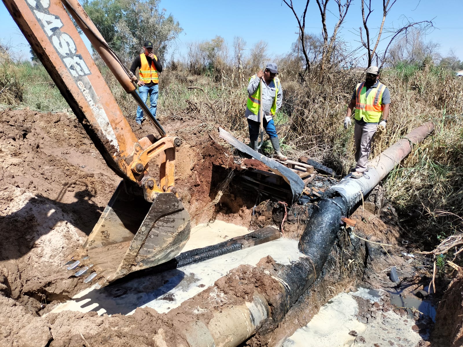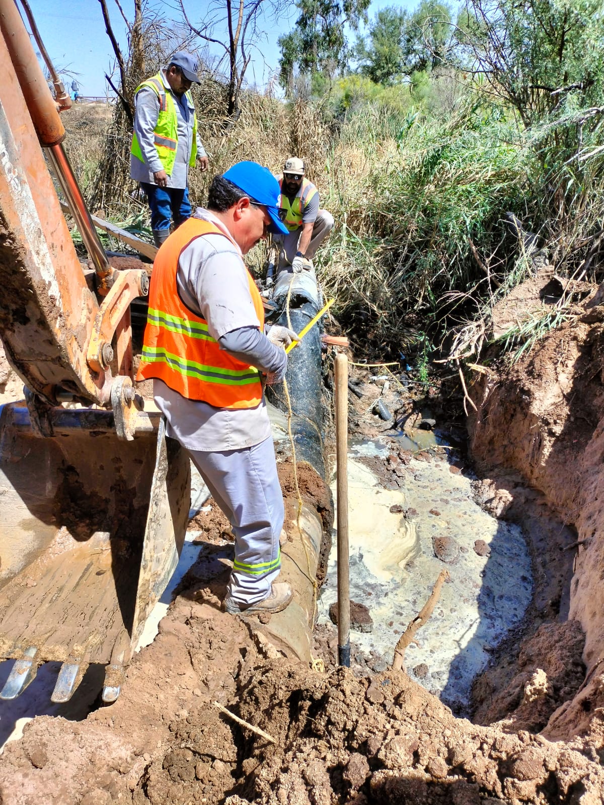 Para llevar a cabo estos trabajos, se movilizó desde Mexicali un equipo especializado de Aguas Residuales, equipado con una retroexcavadora, una planta de emergencia, así como los insumos y materiales necesarios para realizar la reparación de manera eficiente.
