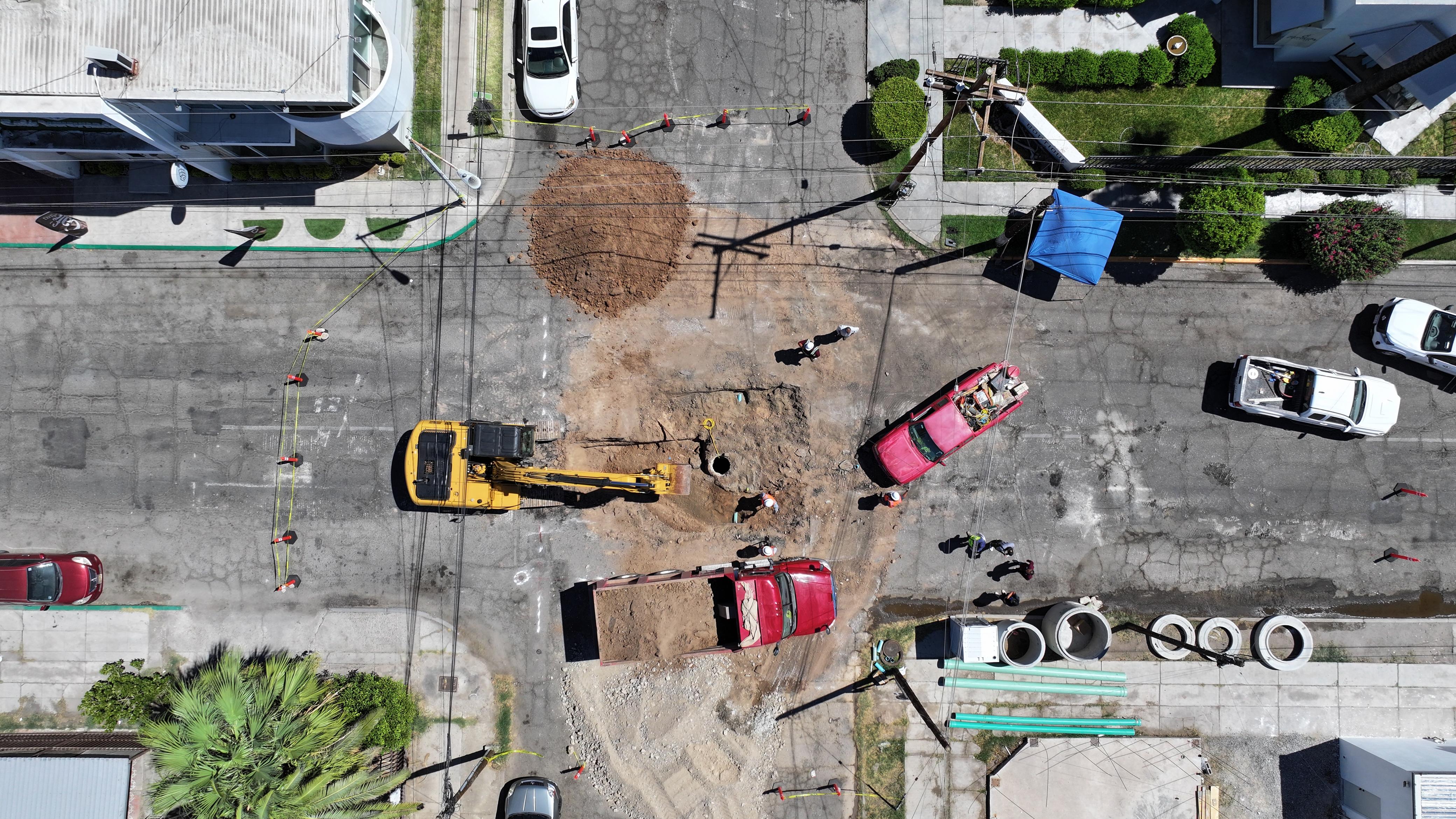 Los trabajos se llevan a cabo en calle J, esquina con avenida Miguel Negrete, Mariano Arista y Pastor Ramos, donde se instalarán pozos prefabricados con el objetivo de reforzar la infraestructura existente.