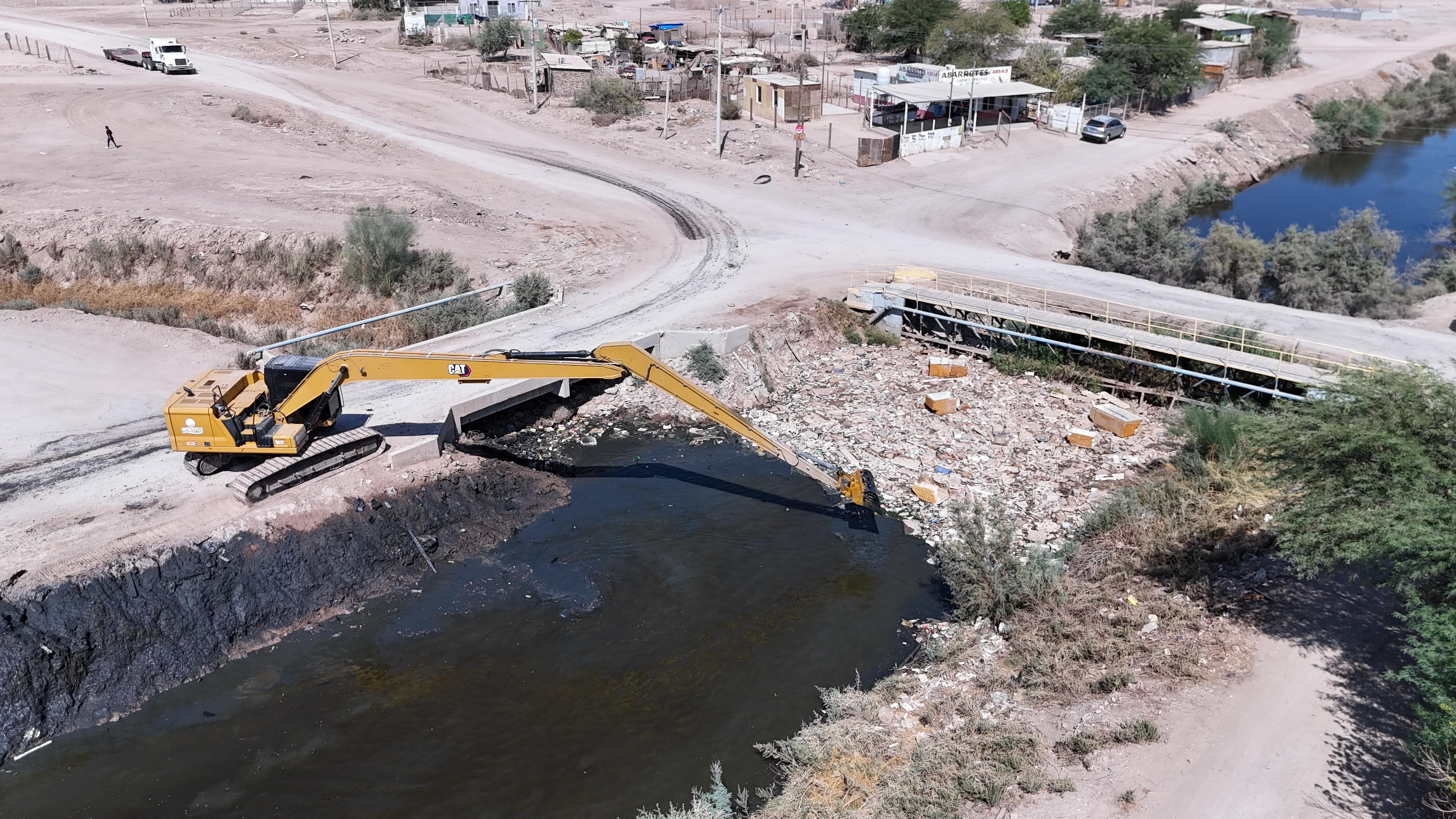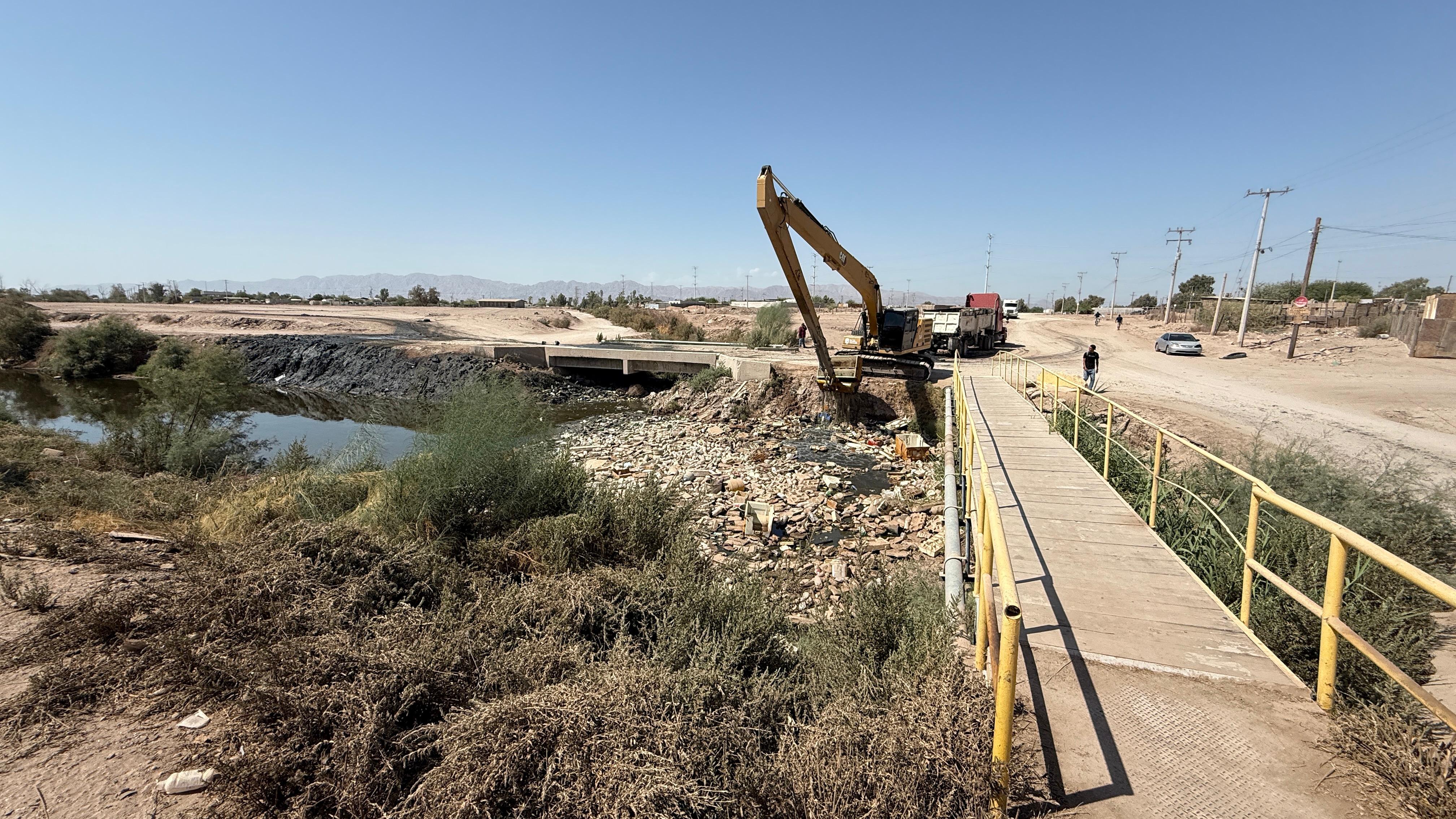 Mexicali. – Como parte de sus trabajos permanentes de limpieza y mantenimiento de la infraestructura hidráulica, la Comisión Estatal de Servicios Públicos de Mexicali (CESPM) realizó la limpieza del Dren Colector del Norte, en el tramo correspondiente a la calle Limoneros.