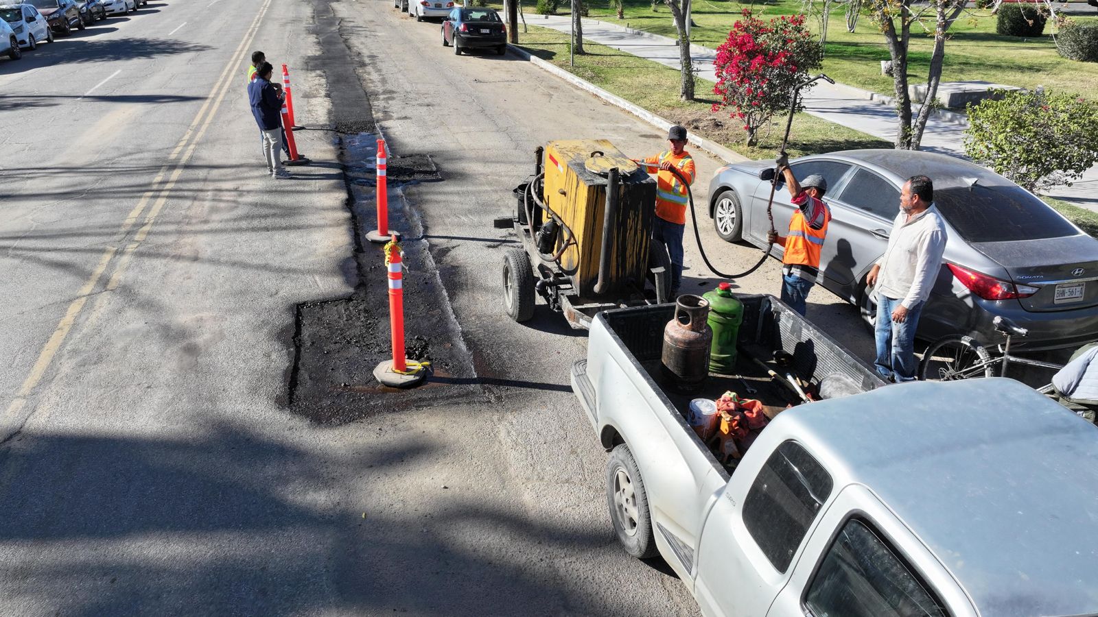 Las labores finales consisten en la limpieza con barredora manual y el retiro de materiales producto de la ruptura de la carpeta asfáltica y de las excavaciones realizadas, así como en la reposición de la base hidráulica, acciones necesarias para dejar la vialidad en condiciones adecuadas y seguras para la circulación.