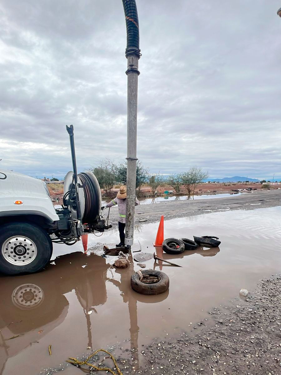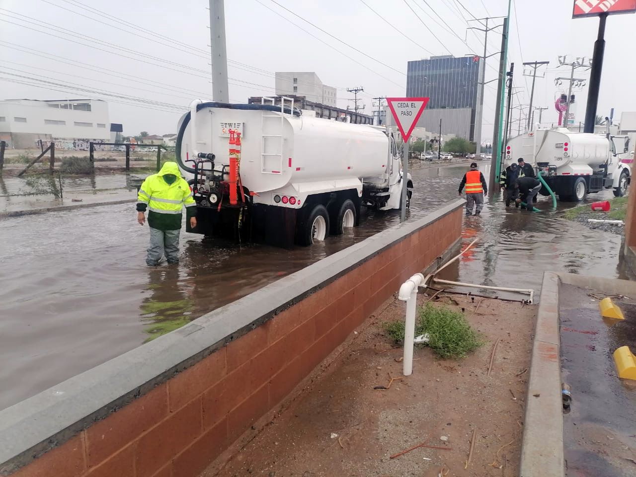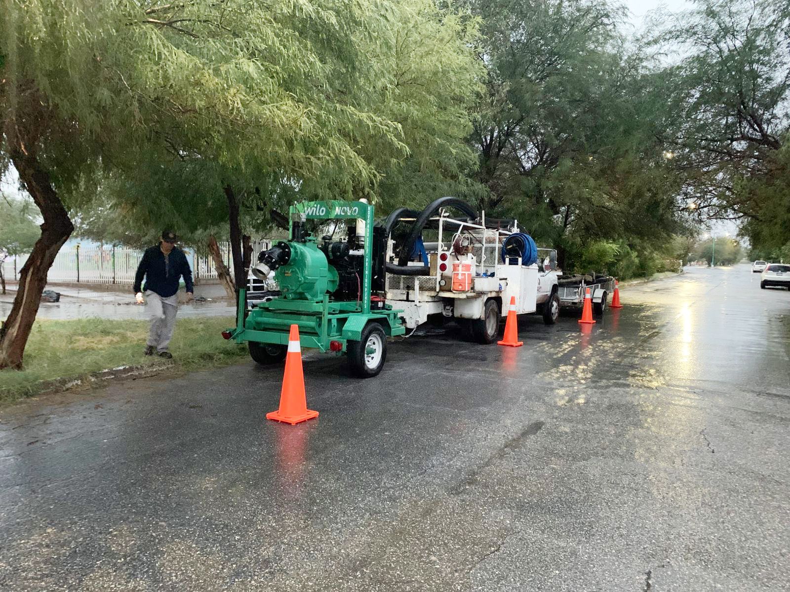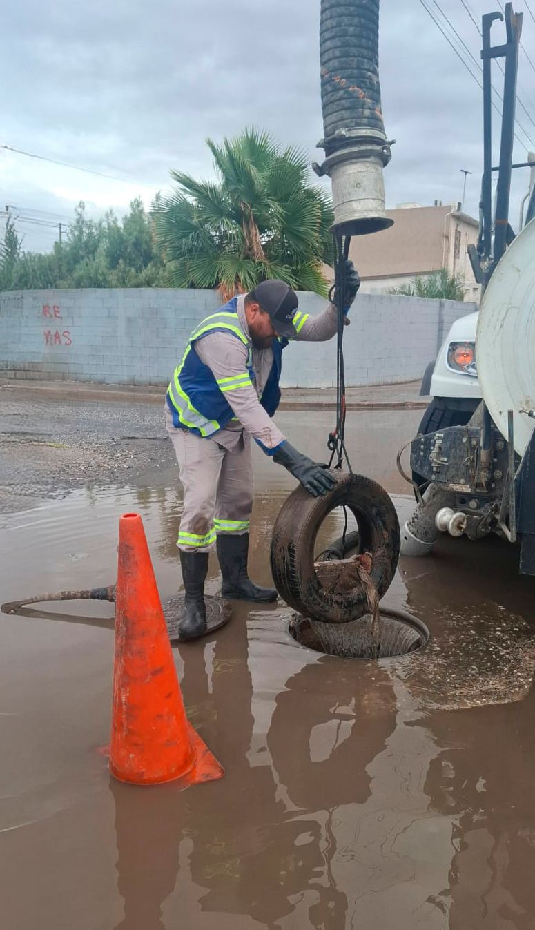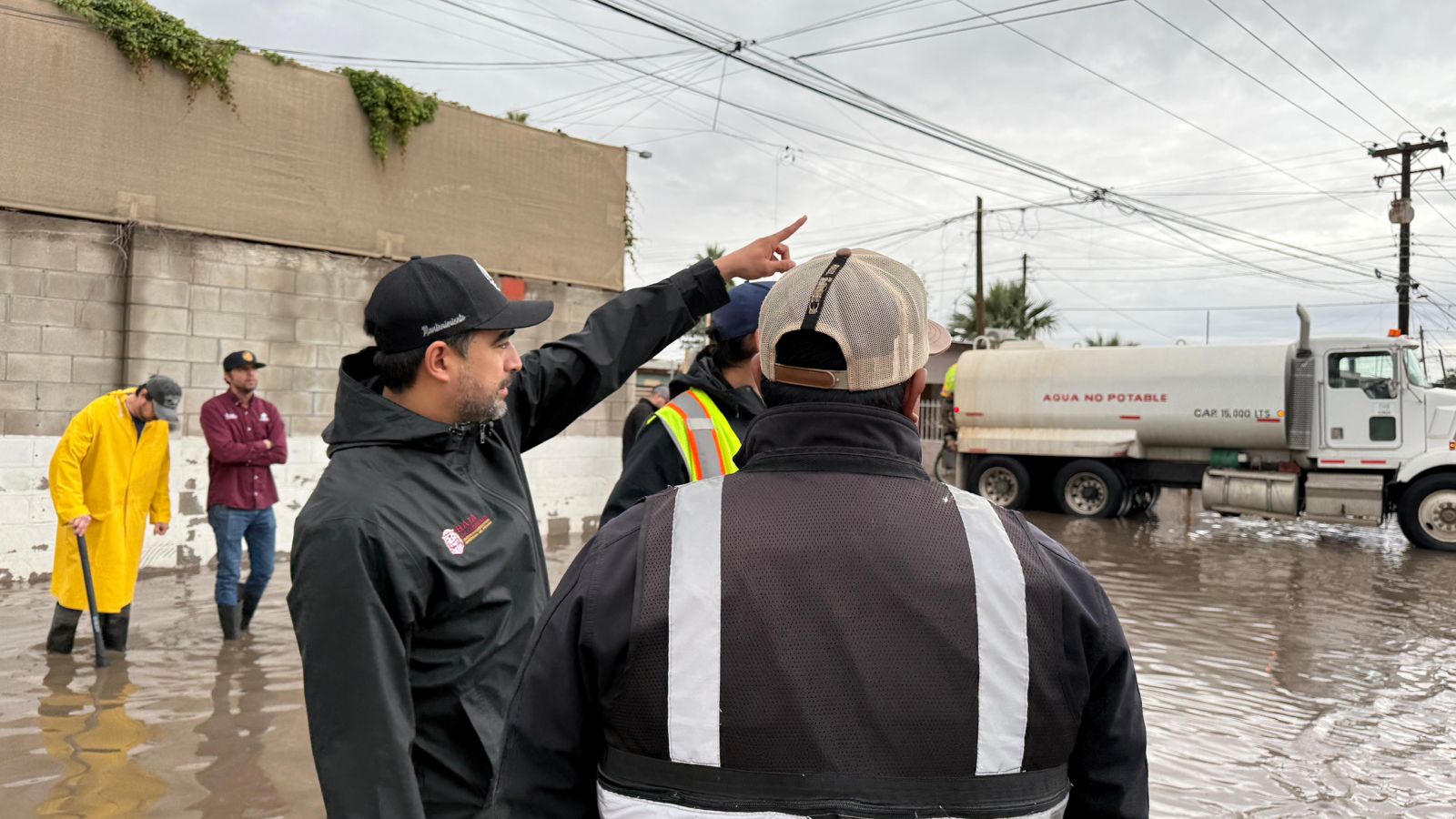 Mexicali. —Tras las lluvias registradas entre el viernes y sábado en Mexicali, la Comisión Estatal de Servicios Públicos de Mexicali (CESPM) desplegó un operativo intensivo para atender encharcamientos y mejorar el flujo del agua en diversas zonas de la ciudad, trabajando de forma ininterrumpida durante la noche y madrugada.