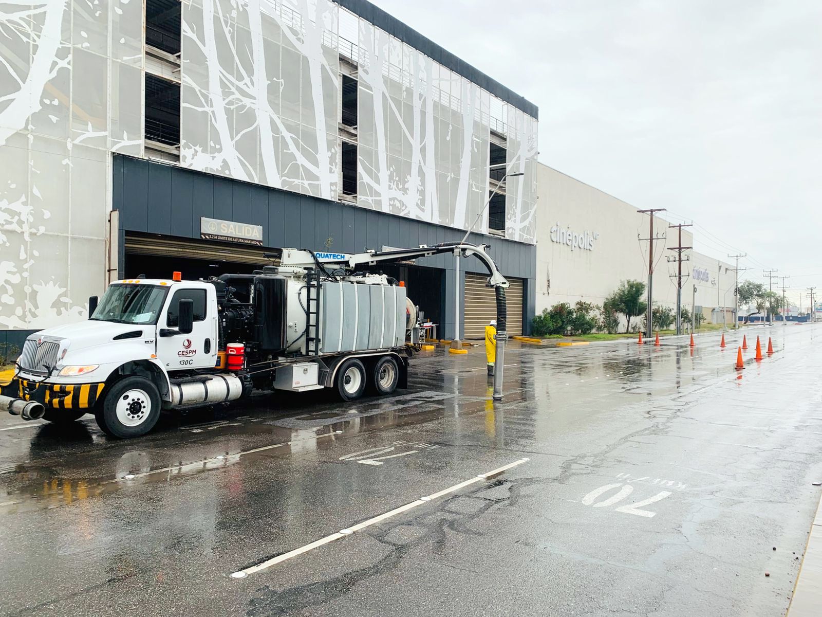 Para reforzar la atención en campo, CESPM distribuyó camiones de desazolve en distintos puntos de la ciudad. Uno de ellos se ubicó en Calle C y Obregón con la unidad 118C; otro en la carretera San Luis, frente a Kenworth, con la unidad 119C; y un tercero en Pórticos–Vista del Valle, con la unidad 120C. Además, se desplegaron equipos en Valle de las Misiones, Versalles, Palaco, San Marcos, Misión del Valle y en fraccionamientos del oriente, atendidos por unidades especializadas en cada zona.
