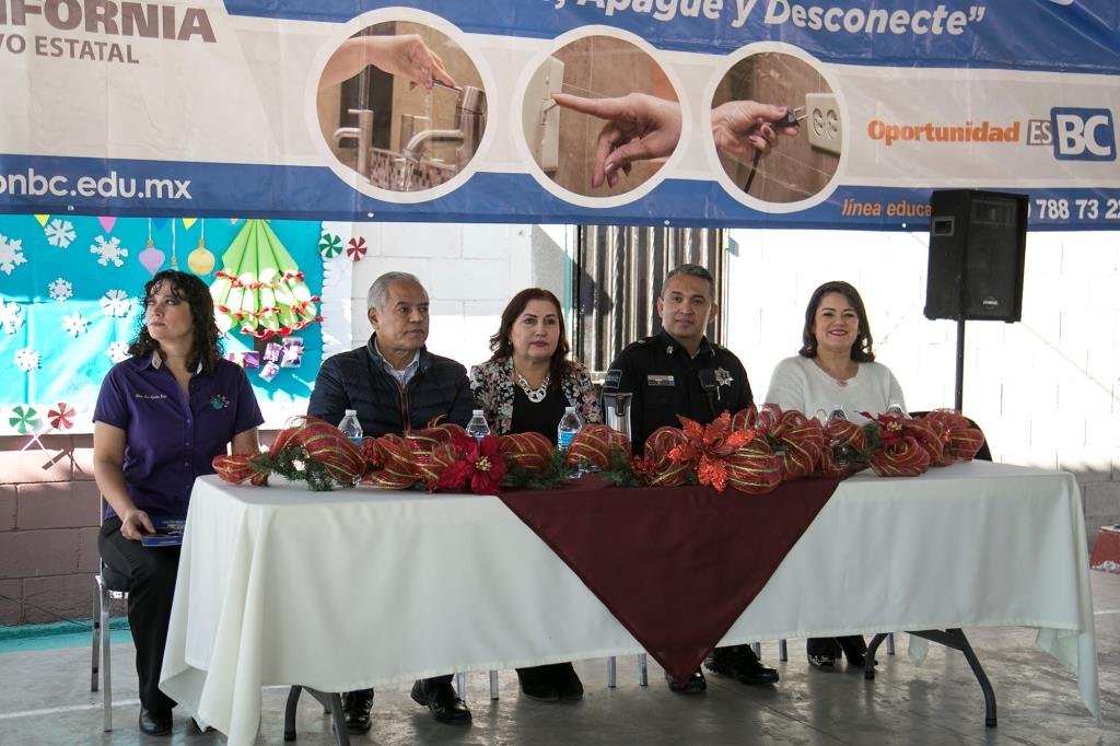 En el acto también estuvieron presentes: Mónica Bedoya Serna, Directora de Normatividad e Inversión del SEE; Gabriela Rodríguez Lizárraga, Subdirectora del plantel; y Carlos Besne-Irigoyen Ontiveros, Coordinador de Seguridad y Emergencia Escolar del SEE.