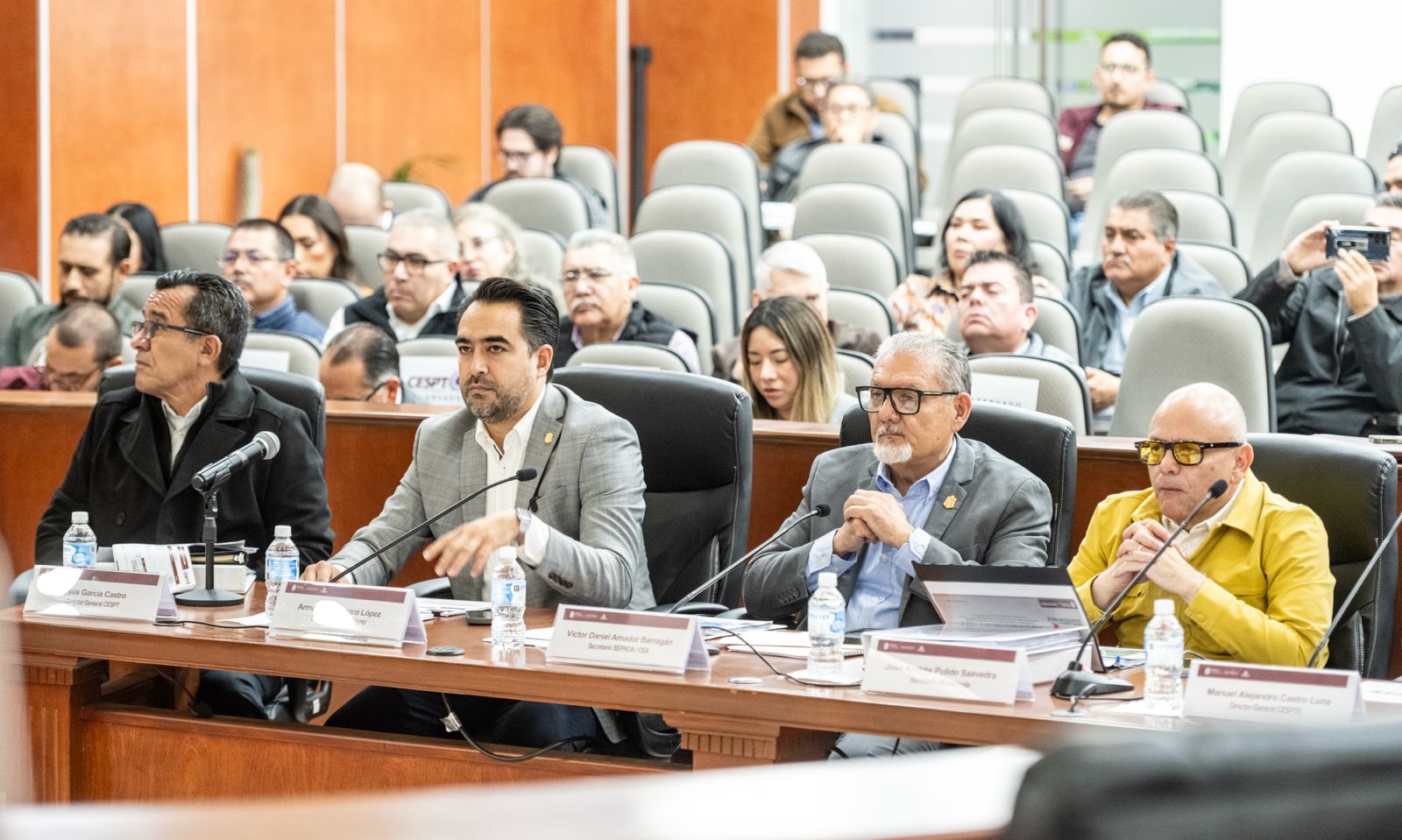 El Secretario de Hacienda, Andrés Pulido Saavedra, acompañado por el Secretario del Agua, Víctor Amador Barragán, y los directores de los organismos operadores de Baja California, acudió al Congreso del Estado para presentar avances administrativos y técnicos. El director de la CESPM, Armando Carrazco López, destacó los resultados del Bono Verde y el fortalecimiento del desazolve en Mexicali.