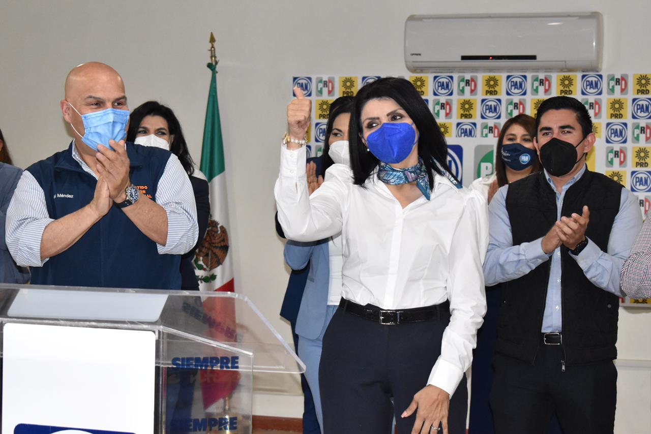 De manera oficial este jueves quedó confirmada la pre candidatura de Eva María Vásquez Hernández rumbo a la alcaldía de Mexicali, por parte de la Coalición Va Por Baja California, integrada por el Partido Acción Nacional (PAN), Partido Revolucionario Institucional (PRI) y Partido de la Revolución Democrática (PRD).