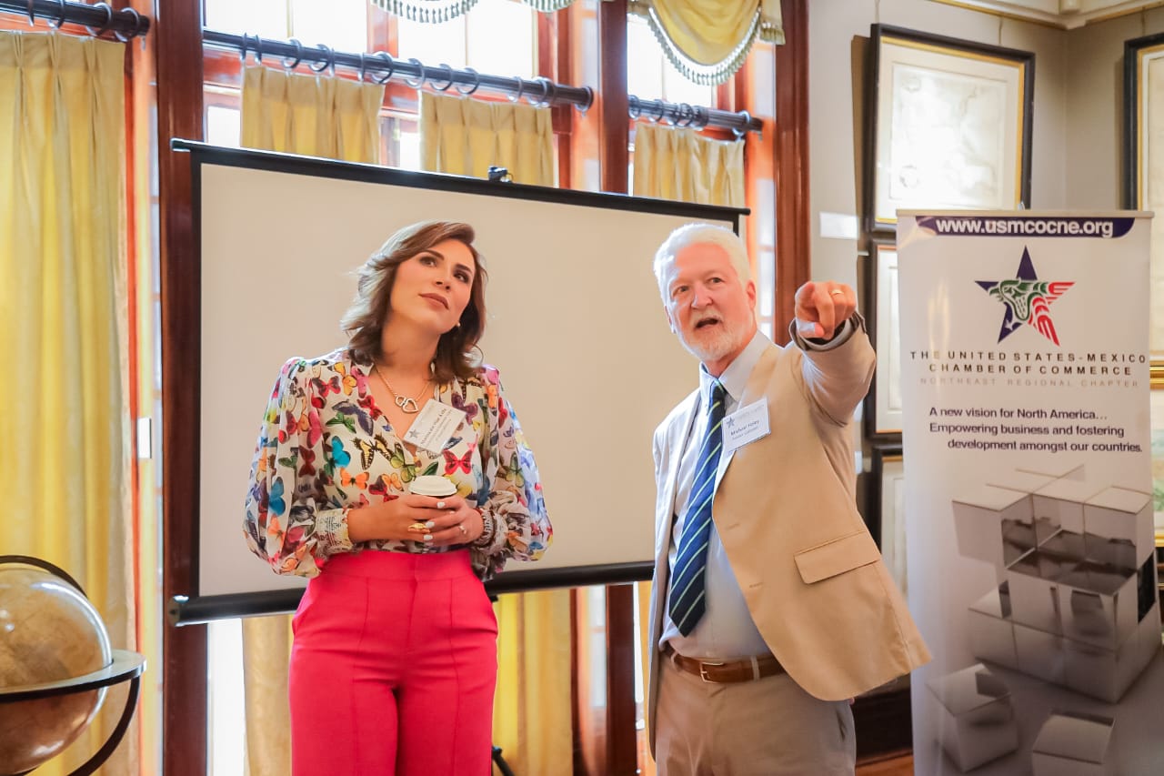NUEVA YORK, ESTADOS UNIDOS.- Inversionistas y especialistas de diversas partes del mundo analizaron las oportunidades que ofrece Baja California para instalar y ampliar cadenas productivas a través de la información presentada por la gobernadora del Estado, Marina del Pilar Avila Olmeda, durante una reunión en la Cámara de Comercio México-Estados Unidos en la ciudad de Nueva York.