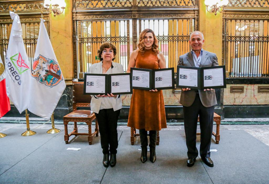 Posteriormente, Avila Olmeda y Bárcena Molina realizando un recorrido por las instalaciones del Palacio Postal, mostrando al público en general y a la Jefa del Poder Ejecutivo del Estado la historia del servicio postal en México, así como la importancia que éste ha tenido para forjar el desarrollo social, económico, cultural y político nacional a lo largo de los años, desde la emisión de la primera estampilla hace 166 años.