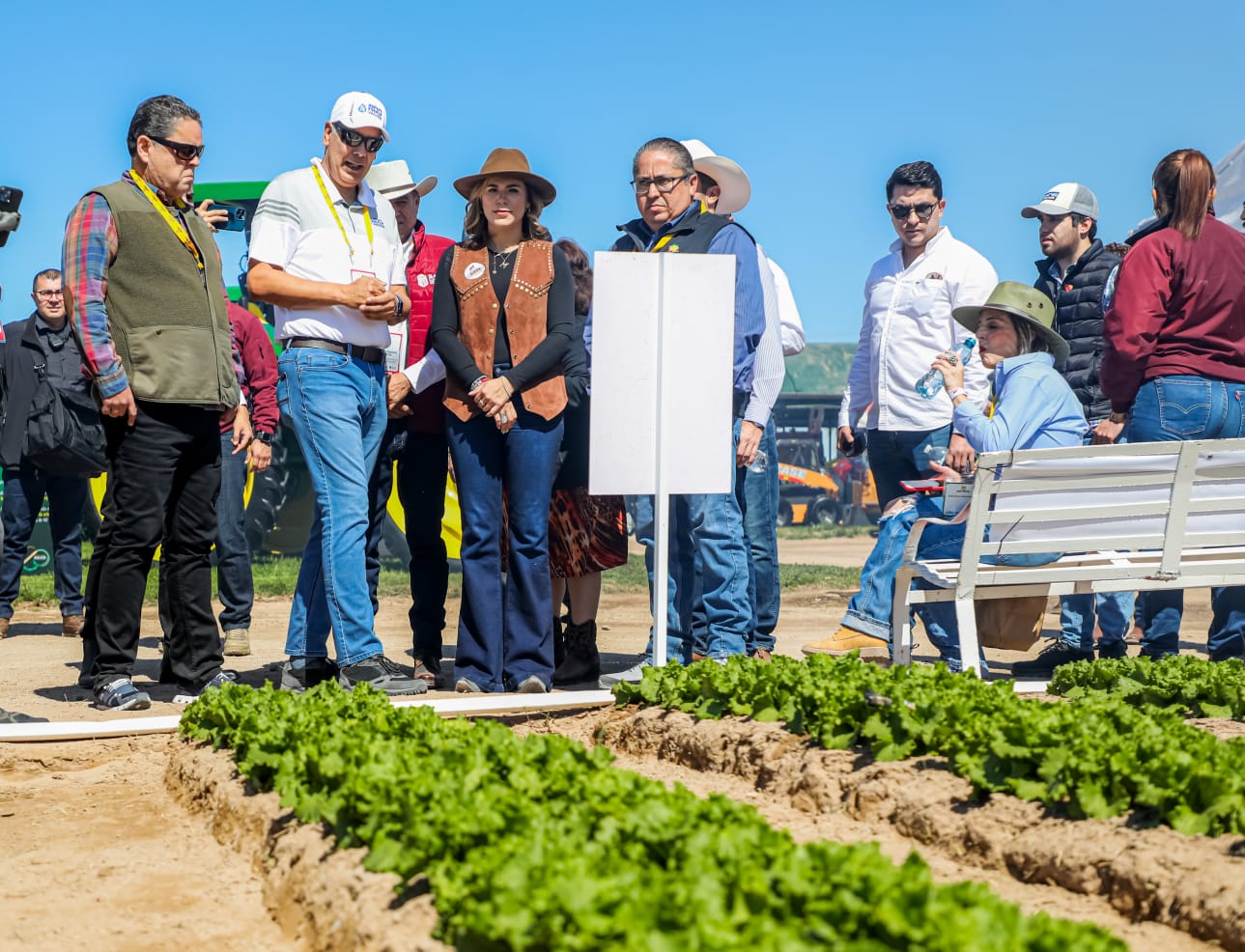 La mandataria subrayó que en los últimos tres años la entidad es líder en la producción de cebollín y ocupa el segundo lugar en cilantro, dátil y frambuesa. También destaca en el tercer lugar con los cultivos de fresa, vid, algodón y zarzamora.