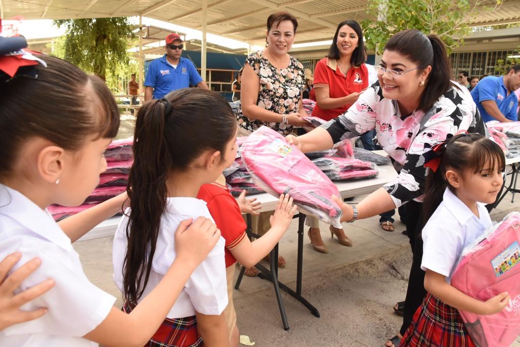 A tres días  que los niños regresaron a clases la Diputada del Tercer Distrito local, Victoria Bentley Duarte a recorrido las primarias para hacer entrega de mochilas y útiles escolares a cada alumno.