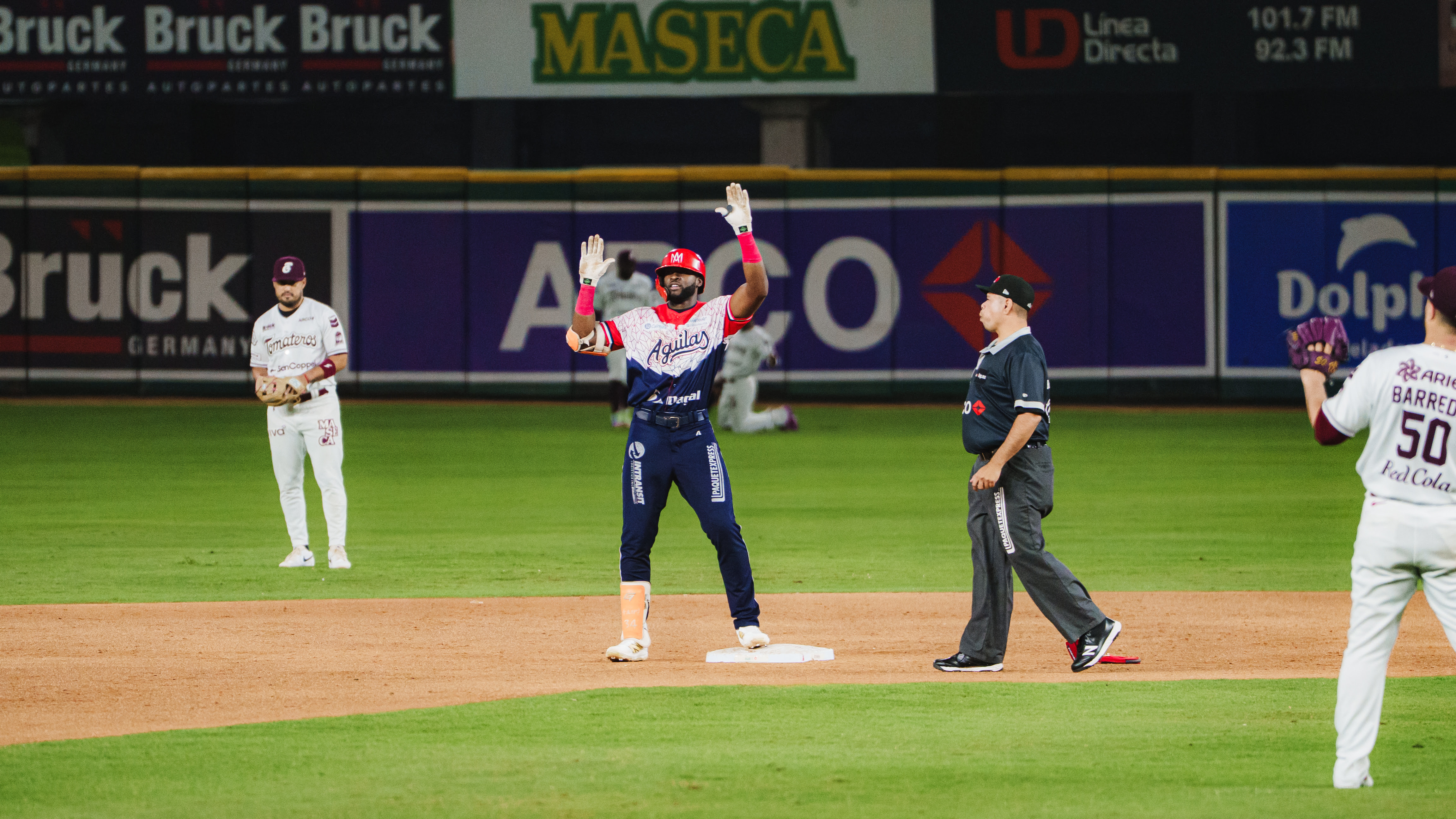 Los Águilas de Mexicali mostraron su ofensiva en la primera entrada, Estevan Florial sacó la bola por el jardín derecho en el primer lanzamiento del juego para su sexto cuadrangular de la temporada para un movimiento tempranero en el score 1 carrera por 0.