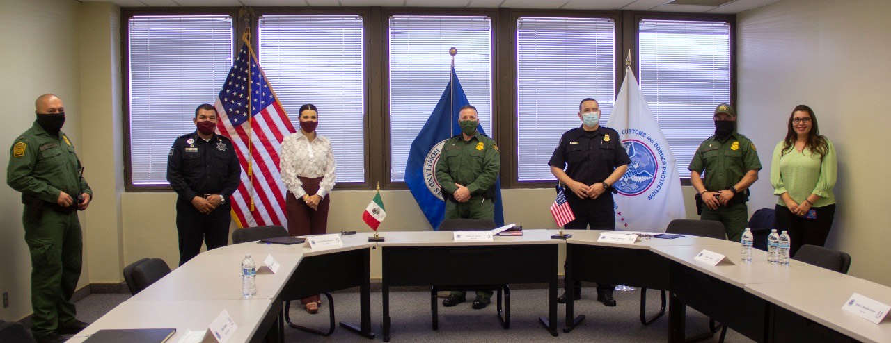 En la reunión estuvieron presentes, Gregory K. Bovino, Jefe de Sector de Patrulla Fronteriza, Sergio Beltrán Director de la Garita Fronteriza, Travis S. Darling, Jefe Adjunto de Patrulla Fronteriza.