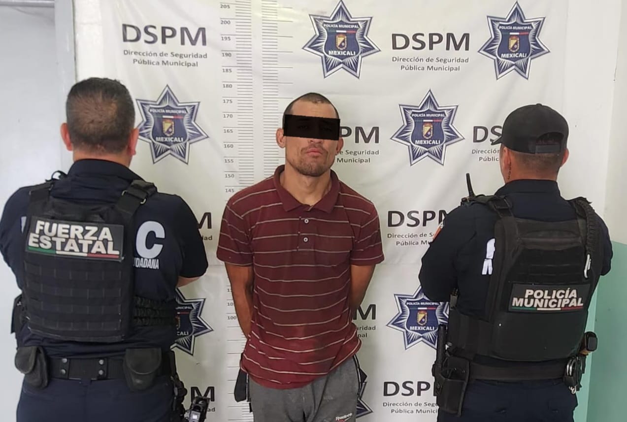 Mexicali, Baja California, a 31 de marzo de 2026. Mediante una intervención rápida y coordinada entre agentes de la Dirección de Seguridad Pública Municipal de Mexicali (DSPM) y la Fuerza Estatal de Seguridad Ciudadana (FESC), se logró la detención de una persona de sexo masculino de actitud agresiva que ponía en riesgo la integridad de su propia familia en el fraccionamiento Huertas del Colorado, al oriente de la ciudad.