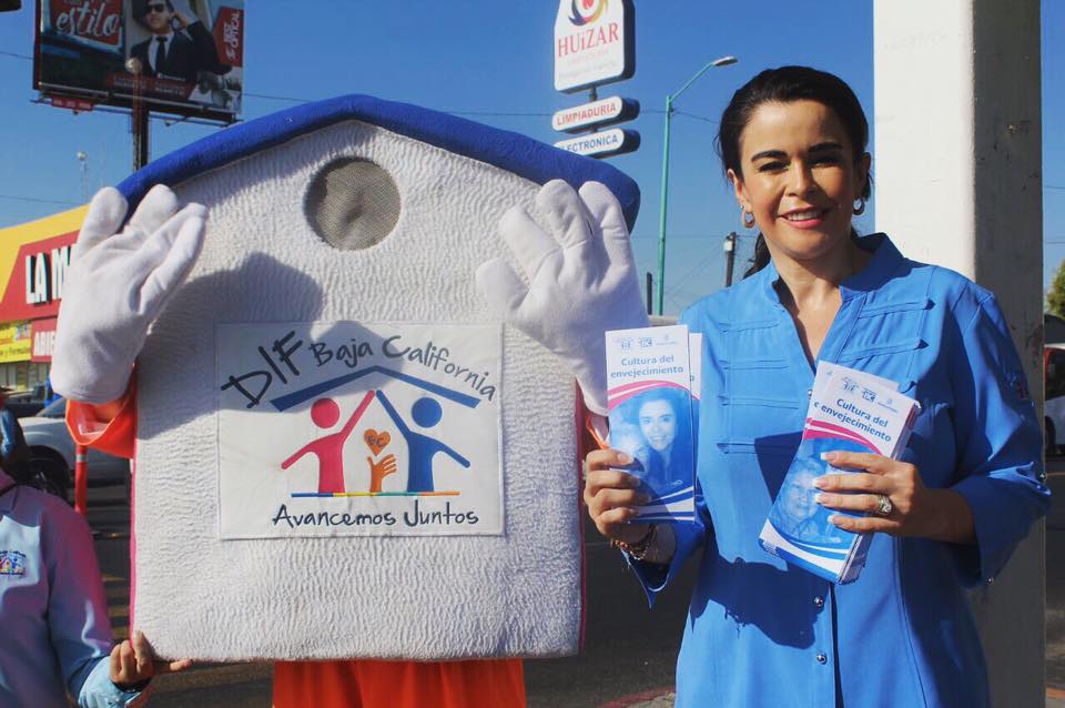 Por ello esta mañana, la señora Ruacho de Vega encabezó un volanteo que se realizó simultáneamente en Mexicali y Tijuana, para entregar 10 mil trípticos y 5 mil calcomanías con información de interés para el adulto mayor como son los servicios que realiza para ellos el DIF Baja California.