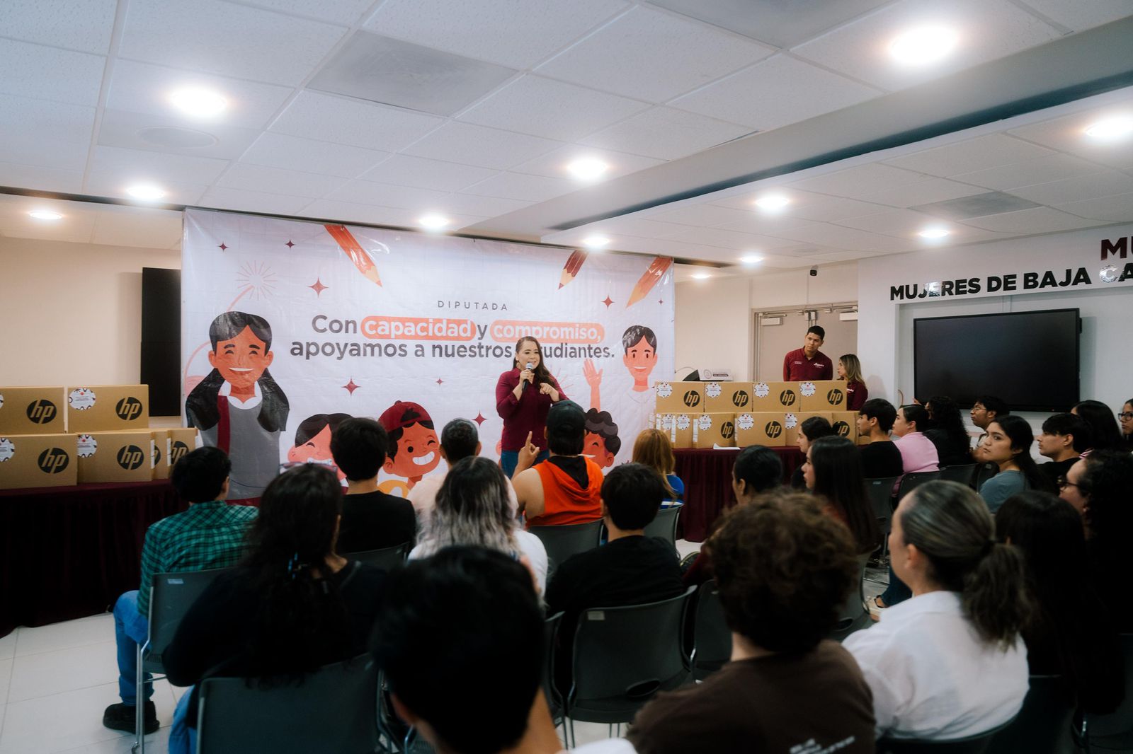 Mexicali, Baja California, 17 de marzo de 2026. — Con el objetivo de fortalecer el acceso a herramientas tecnológicas que contribuyan al desarrollo académico de las y los jóvenes, la diputada Alejandra María Ang Hernández, integrante de la XXV Legislatura del Congreso del Estado de Baja California, realizó la cuarta entrega de laptops a estudiantes de preparatoria del Distrito III, como parte del programa “Educación para Todas y Todos”.