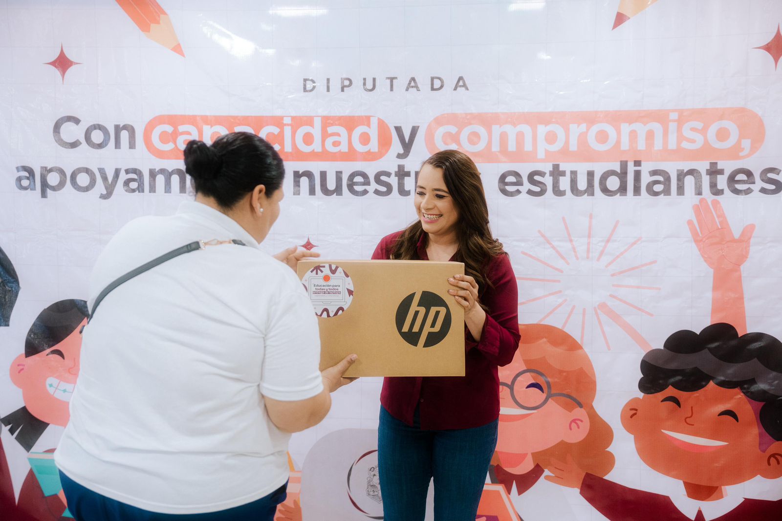 Durante su mensaje, la diputada Alejandra Ang destacó que el acceso a herramientas tecnológicas es fundamental para que las y los jóvenes puedan continuar con su formación académica en mejores condiciones, particularmente en un contexto donde la tecnología se ha convertido en una herramienta indispensable para el aprendizaje.