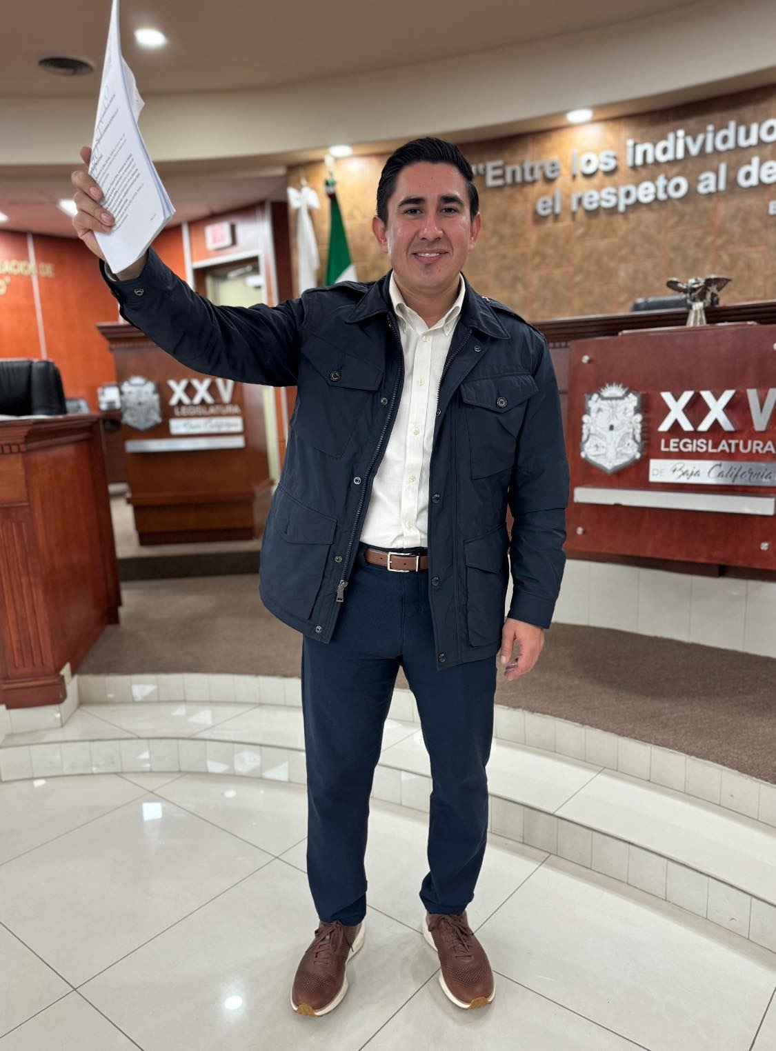 Mexicali, B.C., viernes 31 de enero de 2025.- El diputado Diego Echeverría Ibarra, integrante del PAN, presentó ante la Asamblea un posicionamiento en contra de las políticas de reemplacamiento vehicular en Baja California, además anunció la entrega de una iniciativa para modificar la Ley de Control Vehicular, buscando eliminar los reemplazos periódicos de placas y establecer su vigencia indefinida, esto para proteger la economía de las familias bajacalifornianas.