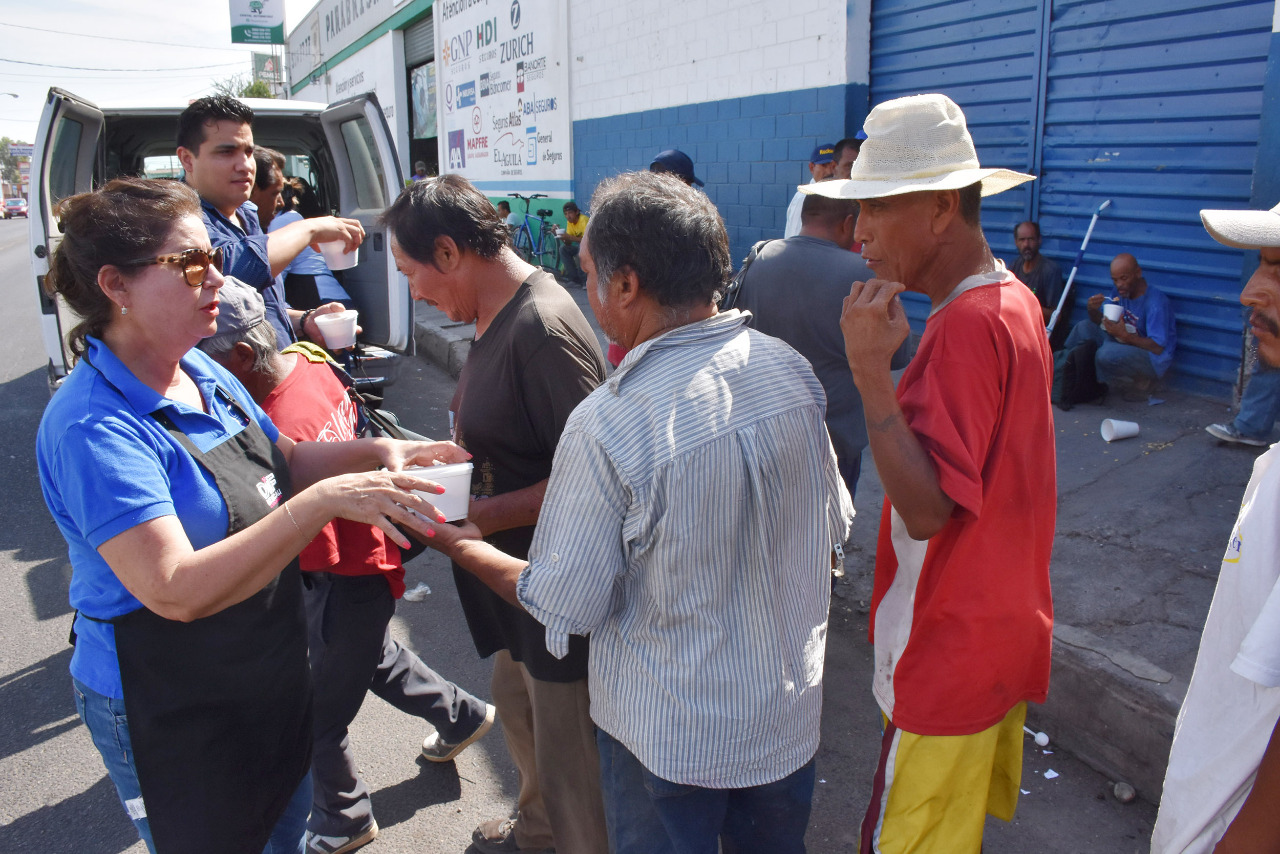 La presidenta de DIF Municipal, Margarita Flores de Sánchez informó que diariamente son repartidos cien desayunos en avenida de los Ferrocarrileros y de la Industria, Calzada Independencia y calle del Hospital Centro Cívico, ya que son las zonas en donde se concentra mayor población en situación de calle.