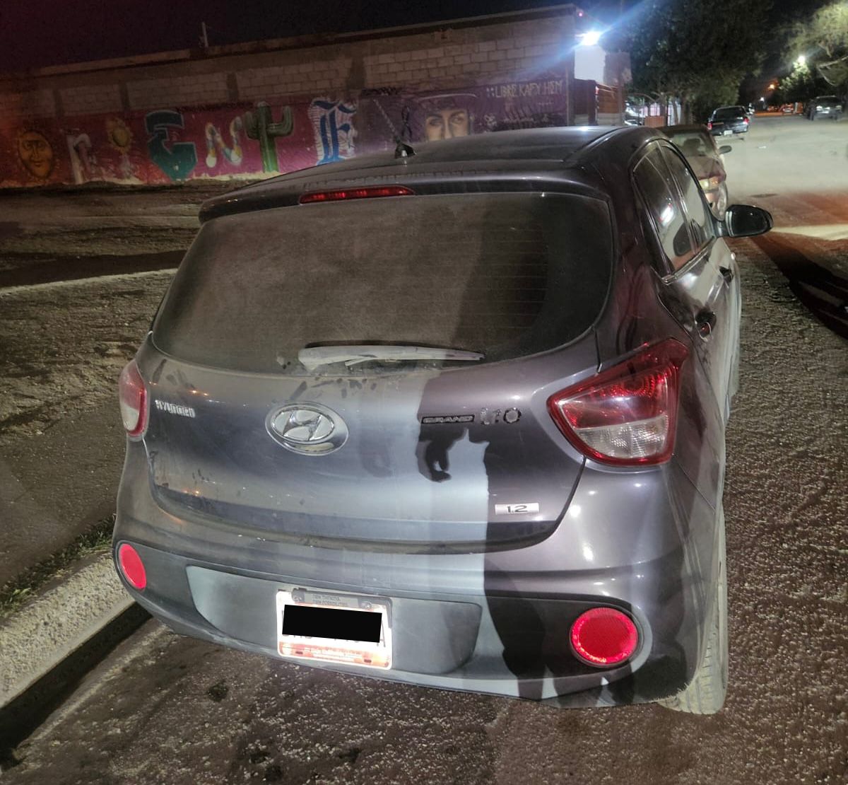 El sujeto por temor obedeció a las instrucciones y cuando los sujetos se retiraron aprovechó para llamar al número único para emergencias; en respuesta agentes de la Policía Municipal y FESC comenzaron la búsqueda localizando en la avenida Karmidas del fraccionamiento Parajes de Oriente el vehículo que coincida con la descripción del reportante, siendo éste un Hyundai i10 color negro.