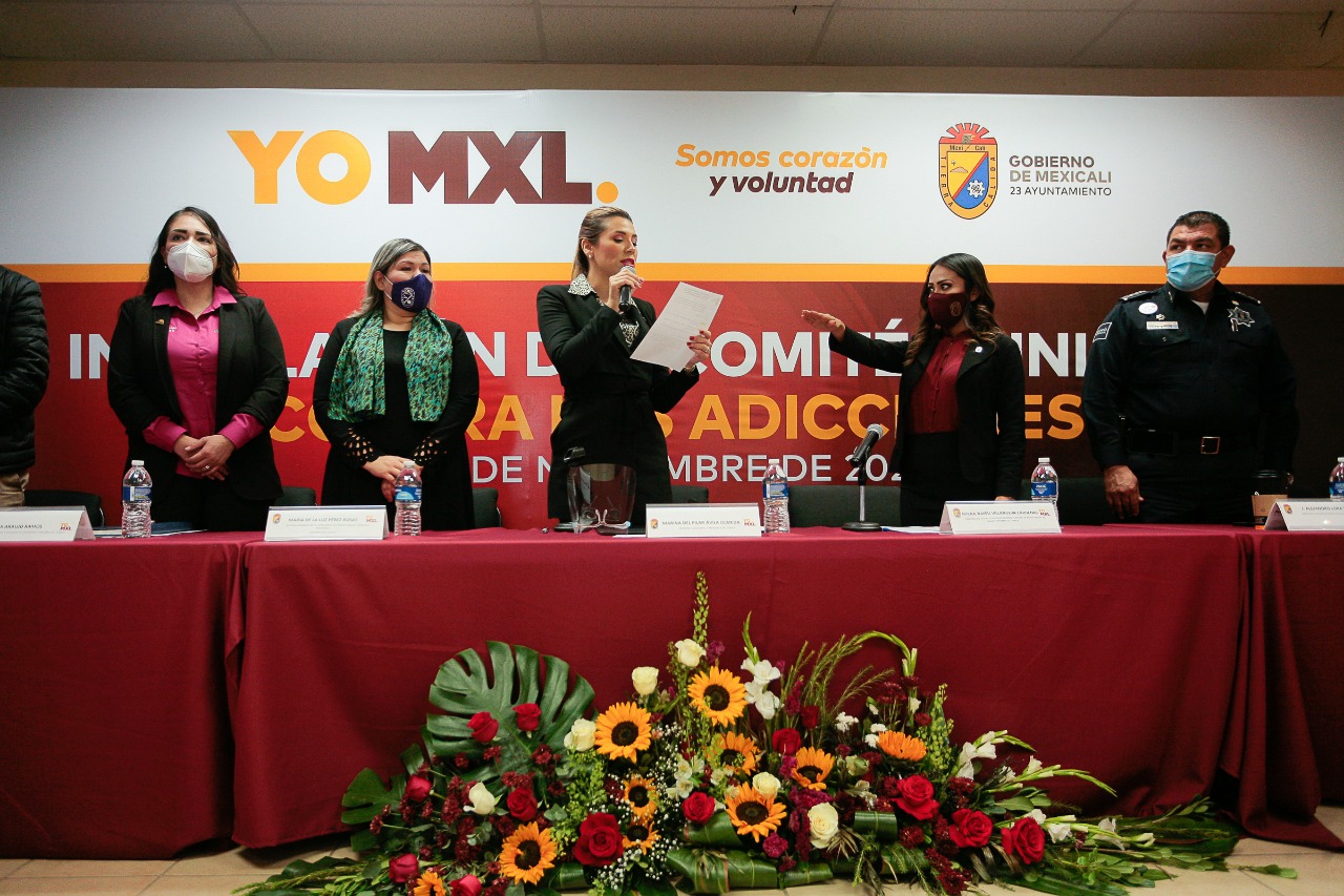 En cumplimiento a unos de los compromisos adquiridos con las familias mexicalenses de trabajar en el combate, control y prevención de las adicciones, la Alcaldesa Marina del Pilar Ávila Olmeda, tomó protesta a los integrantes del primer Comité Municipal contra las Adicciones (COMCA).