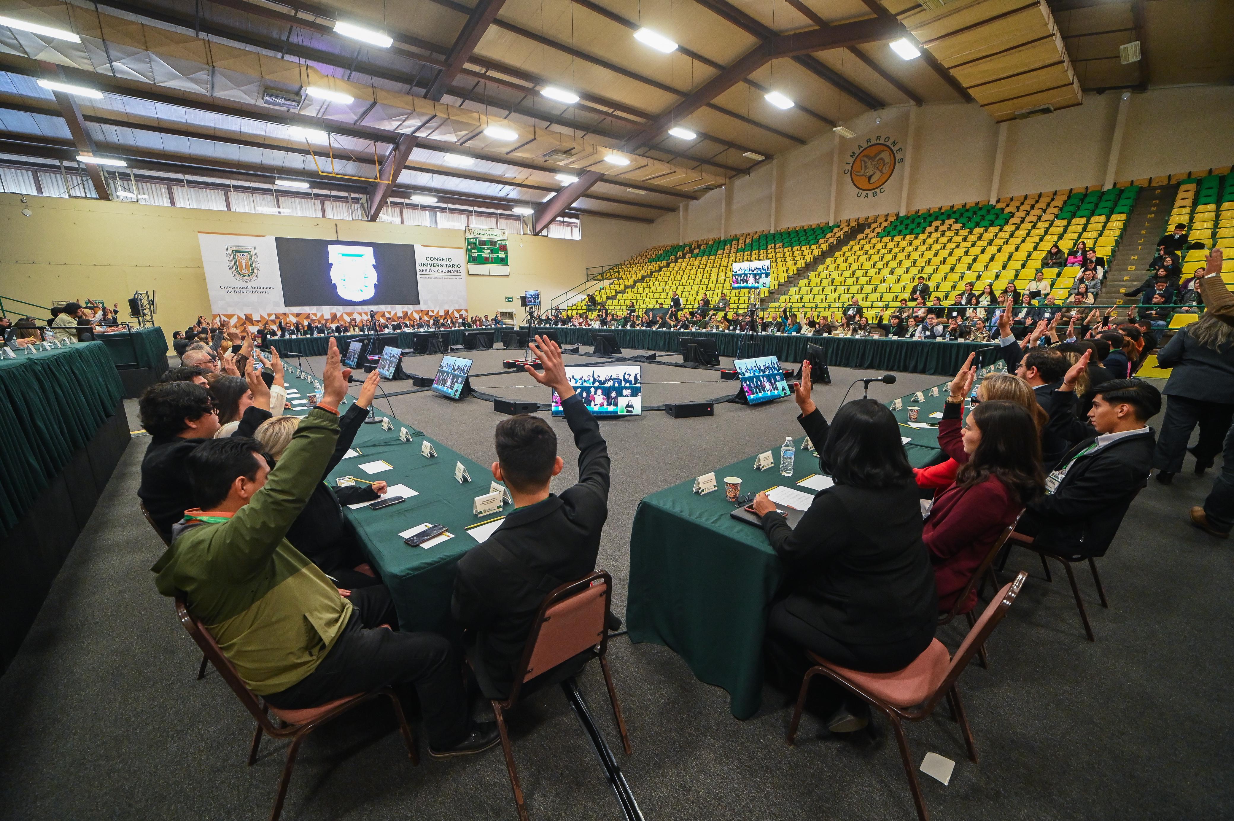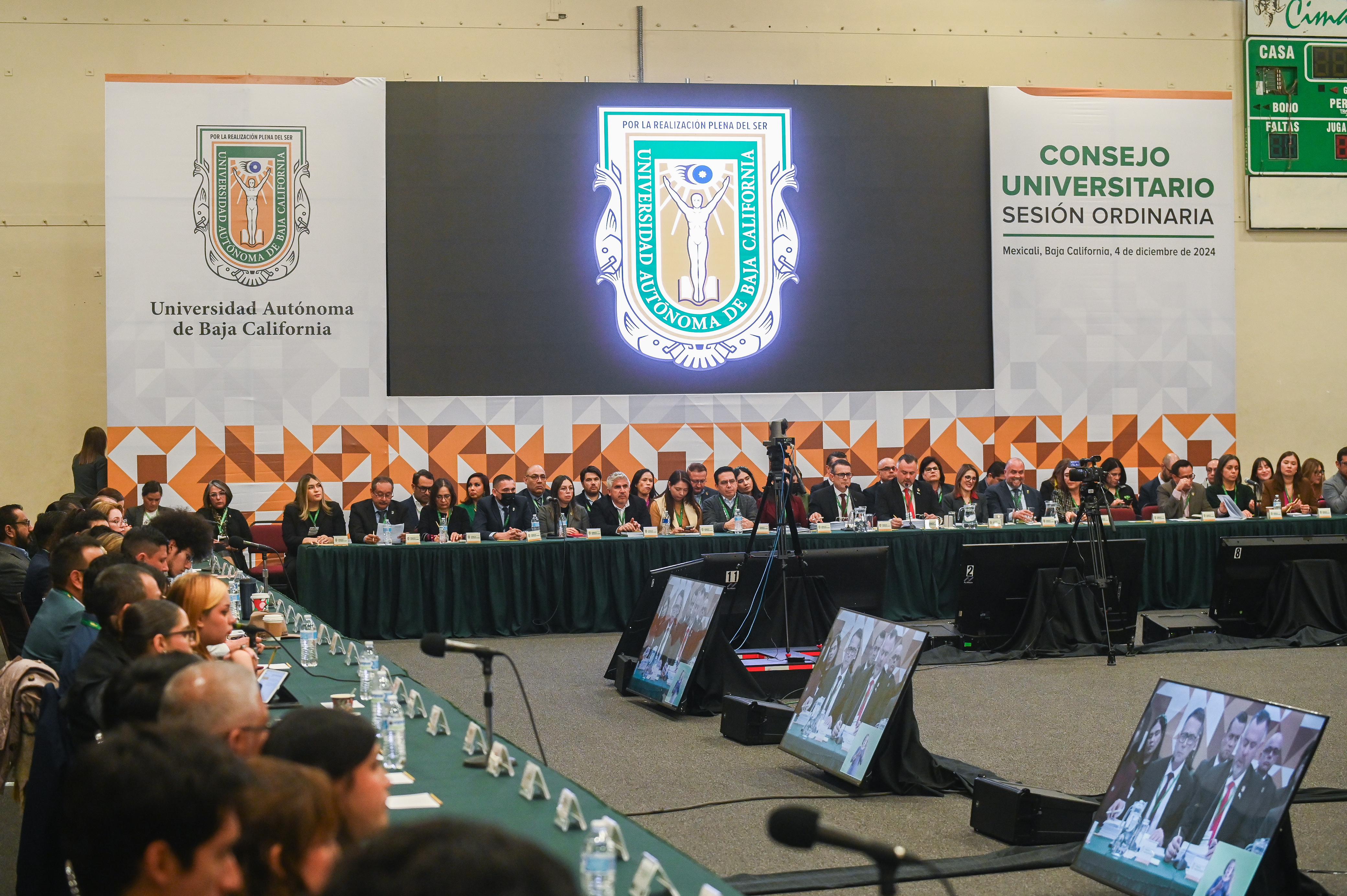Mexicali, Baja California, miércoles 4 de diciembre de 2024.- El Consejo Universitario de la Universidad Autónoma de Baja California (UABC), máximo órgano colegiado representativo de la comunidad universitaria de esta casa de estudios, aprobó de manera unánime el Proyecto de Presupuesto General de Ingresos y Egresos correspondiente al año 2025, en sesión ordinaria celebrada este día en el Campus Mexicali.