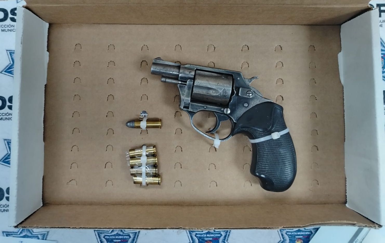 Tras una inspección a su persona no se encontró algo ilícito, sin embargo, en el asiento frontal derecho del vehículo se encontró un arma de fuego tipo revólver que contaba con 04 cartuchos percutidos y 01 activo, razón por la que se le notificó que procedería a ser detenido.