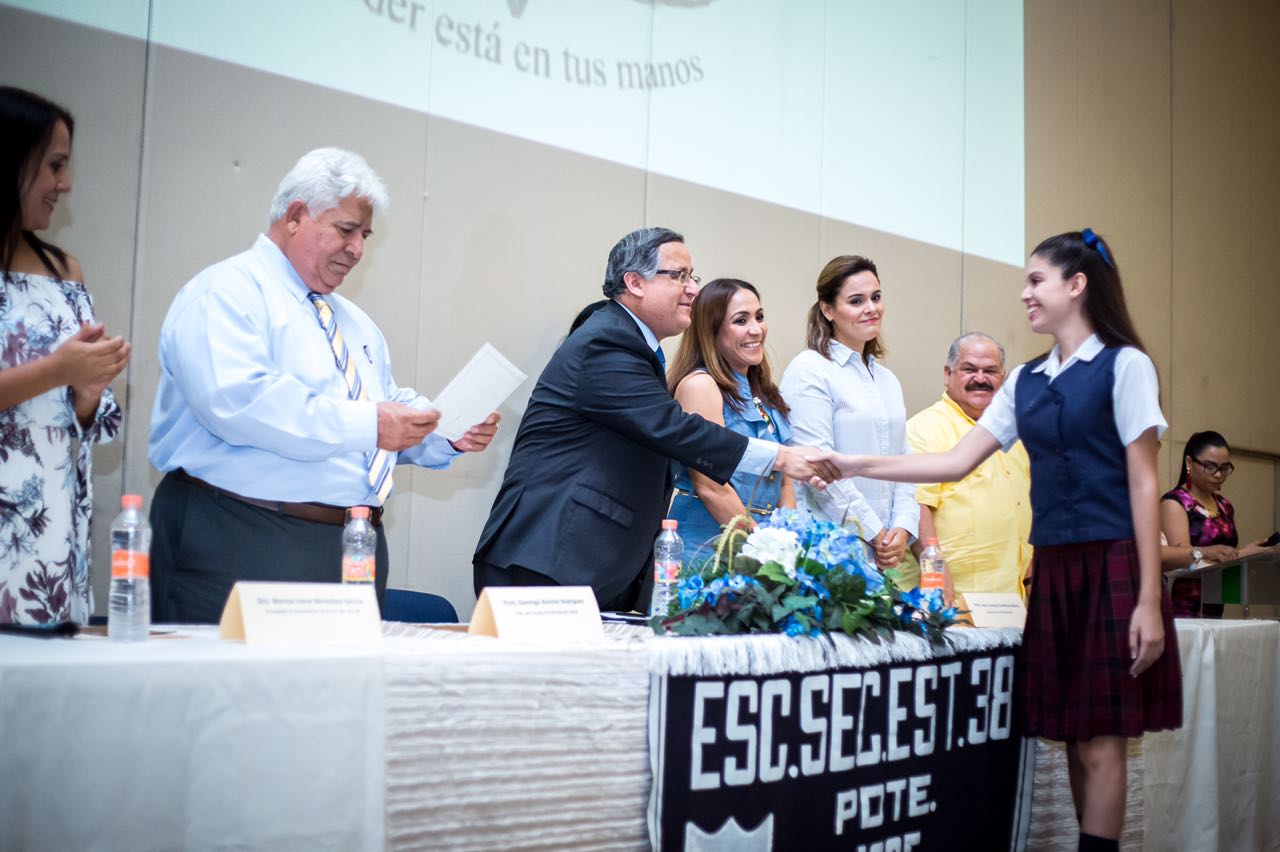 El Alcalde de Mexicali Gustavo Sanchez Vásquez, estuvo presente en la ceremonia de graduación de los alumnos de la Secundaria No. 38 “Presidente José López Portillo”, en donde fungió como padrino de generación.