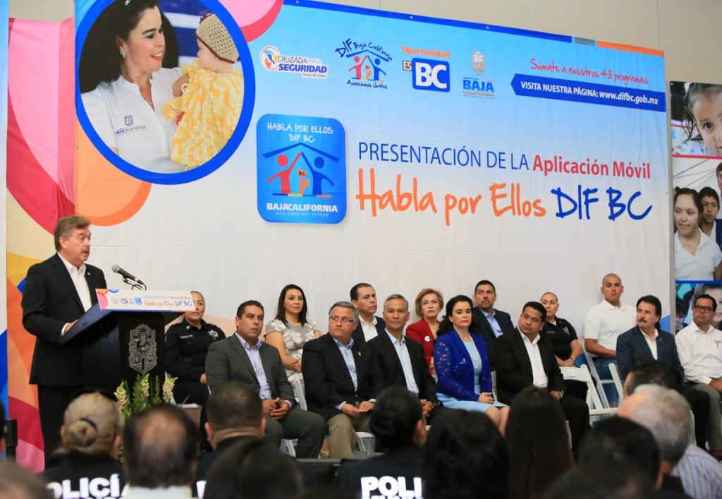Con el propósito de garantizar la protección y desarrollo de las niñas, niños y adolescentes bajacalifornianos, este lunes el Gobernador Francisco Vega de Lamadrid, acompañado por la Presidenta de DIF Baja California, señora Brenda Ruacho de Vega; de los alcaldes y presidentas de los sistemas DIF municipales, encabezó la firma de convenio y presentación de la aplicación móvil “Habla por ellos”, una herramienta que permitirá integrar a los niños y adolescentes a medios saludables.