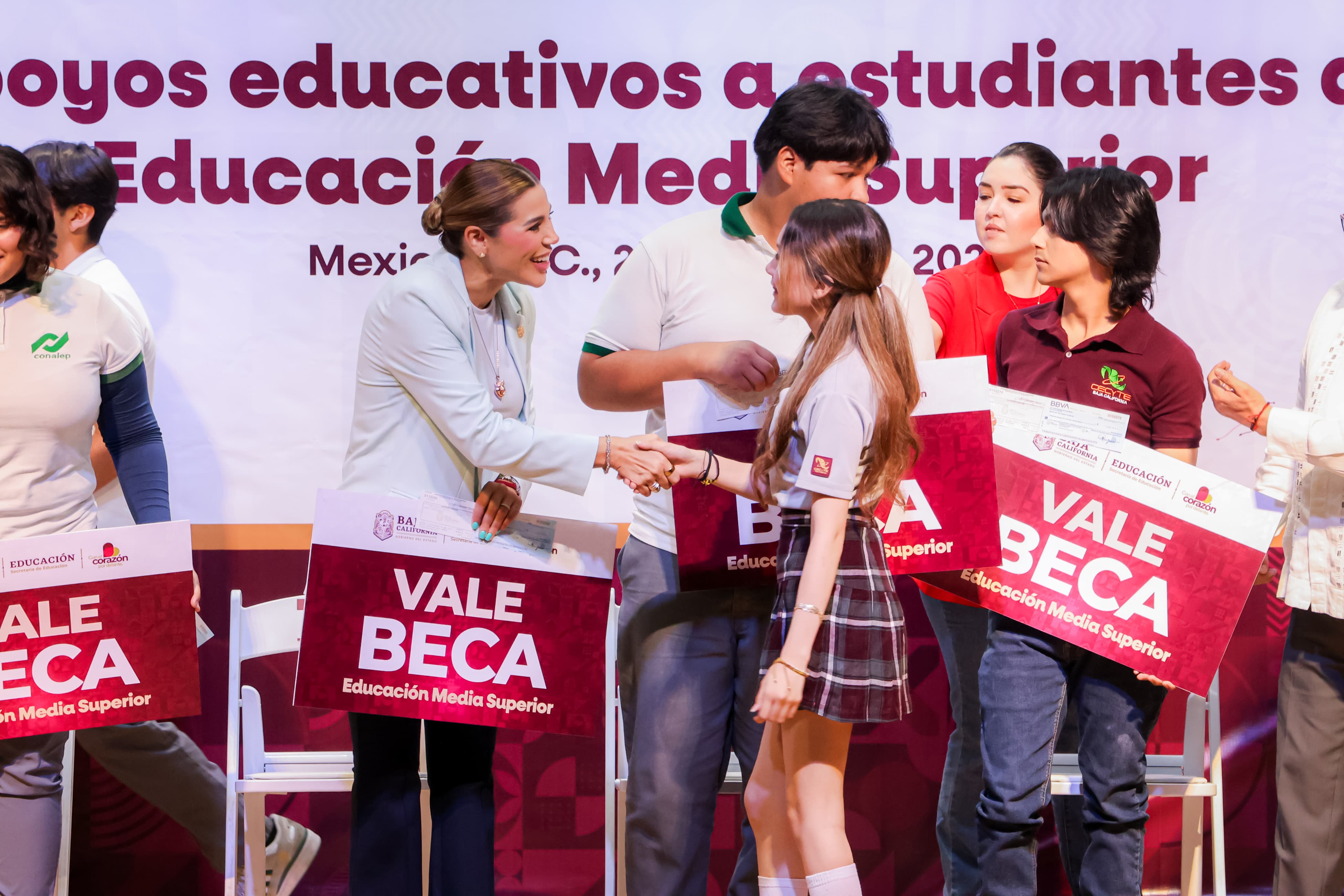 • La mandataria entregó 347 apoyos de mil 500 pesos para estudiantes de preparatorias en Mexicali. El programa beneficiará a mil 500 jóvenes con buen aprovechamiento escolar en toda la entidad