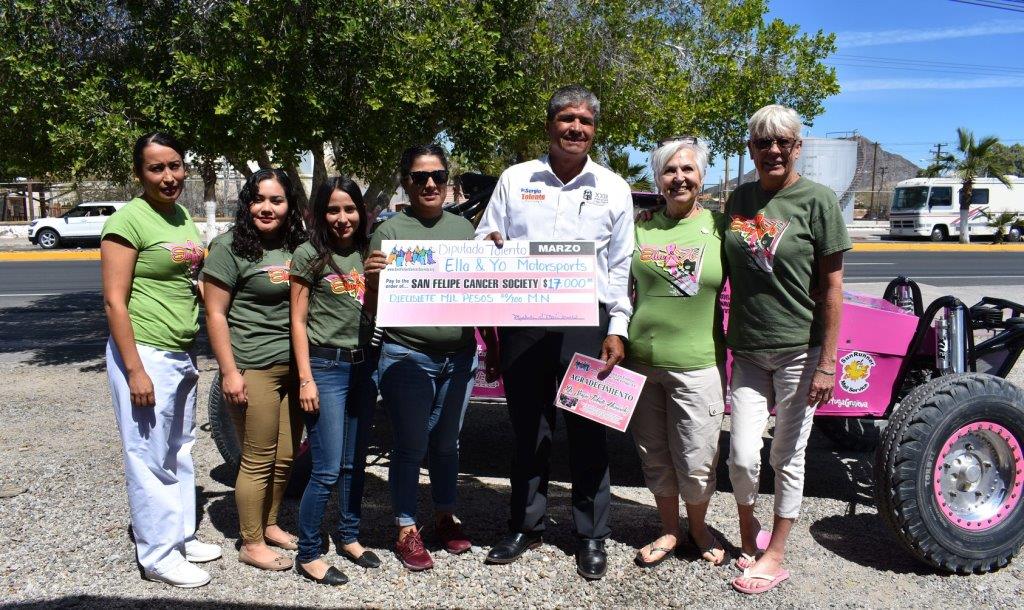 Después acudió al Centro de Detección y Educación del Cáncer, donde en conjunto con Jetzabel Nava piloto del carro de carreras “Ella y Yo”, entregó un donativo por 17 mil pesos a la Asociación Civil Caminata en Contra del Cáncer de San Felipe, la cual se encarga de otorgar servicios de detección y atención de pacientes con cáncer.
