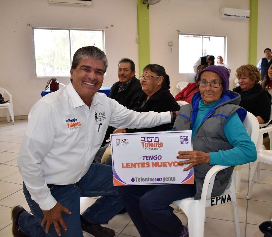 Después Tolento Hernández acudió al Salón del Ejido Plan Nacional Agrario, en donde se desarrolló la entrega de 60 lentes en beneficio de sus habitantes, que en su mayoría son adultos mayores.