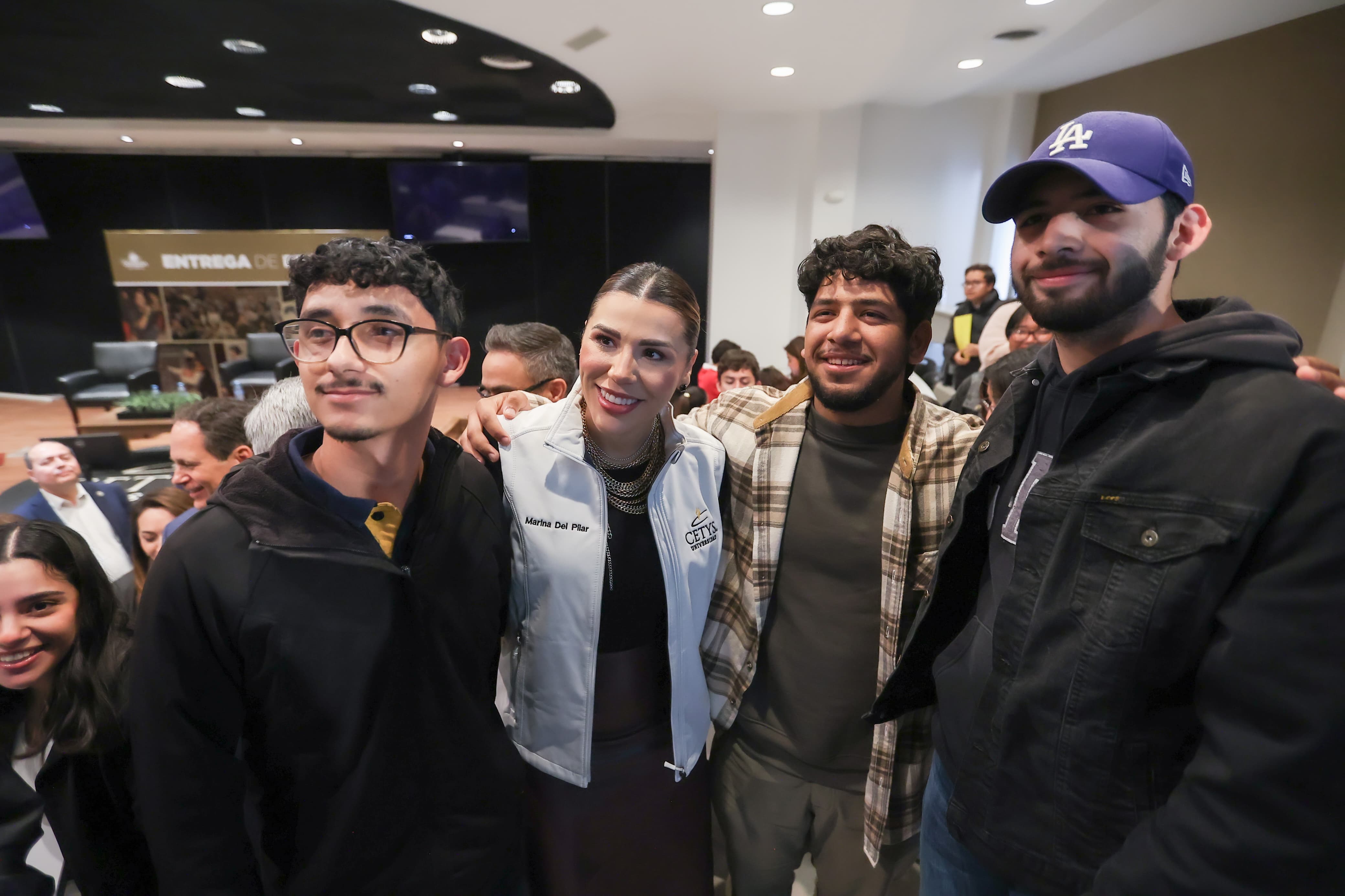 La gobernadora expresó estar convencida de que los sueños se construyen acercando a los jóvenes las herramientas para prepararse y desarrollar su talento. Por ello, este gobierno lo ha hecho de manera integral y a la par del apoyo económico se les dota de computadoras y transporte gratuito a través de los camiones COMUNDER, que ya atienden en todo el estado.