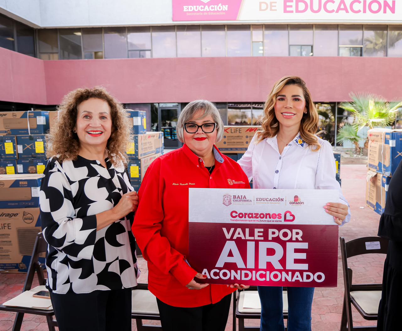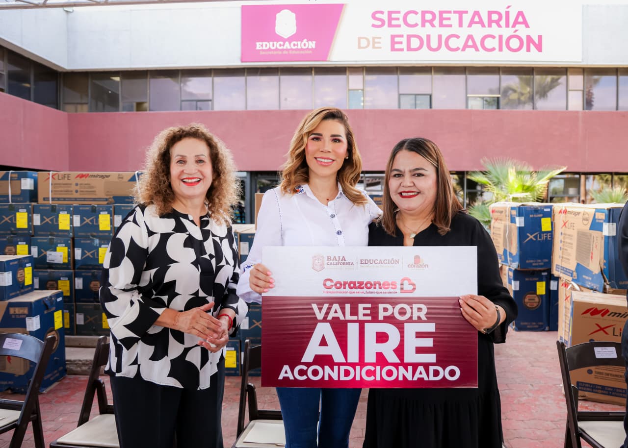 - Se entregarán 575 equipos de aire acondicionado en más de 145 escuelas de Baja California y próximamente se sumarán 850 para fortalecer las condiciones de aprendizaje